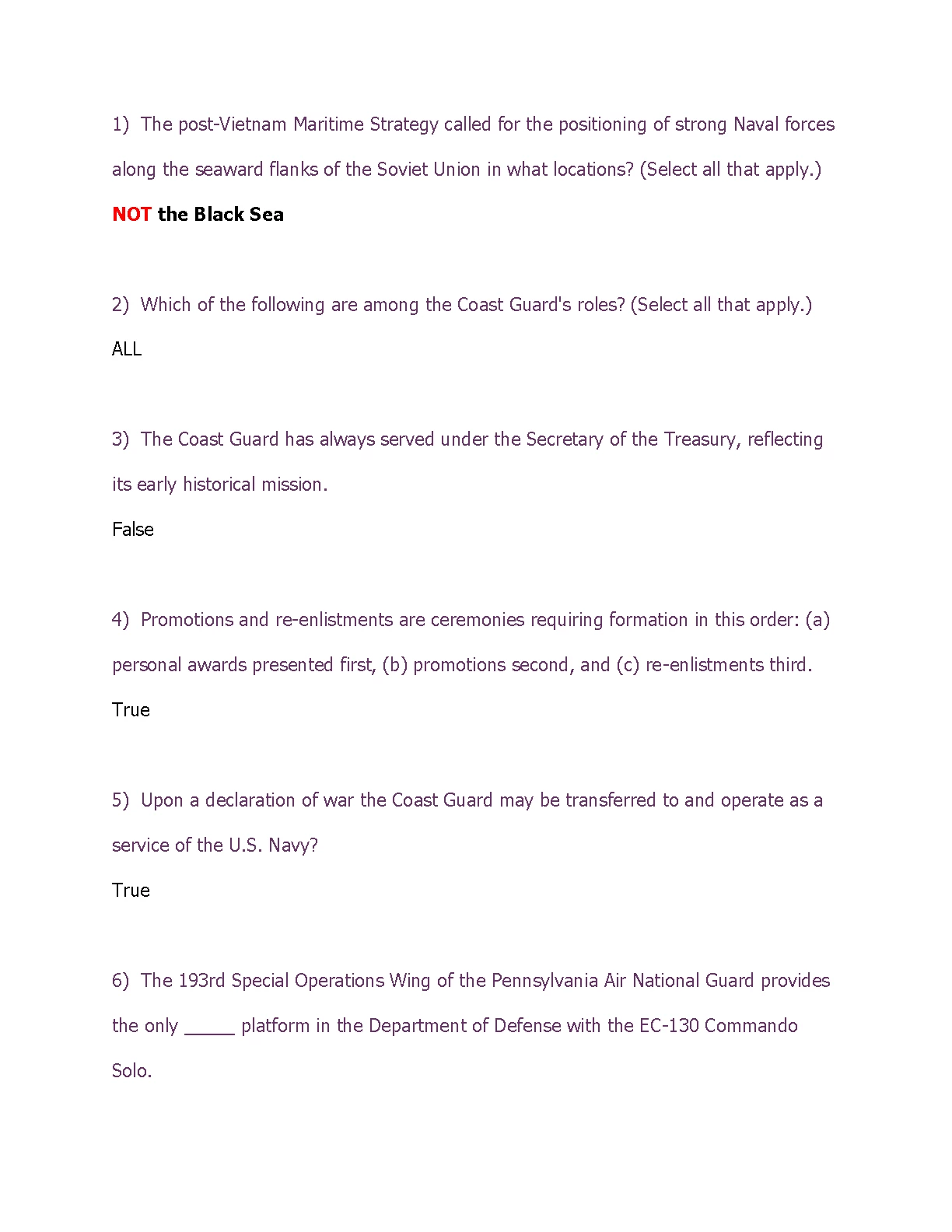 Comprehensive study guide designed to help students pass their Coast Guard exams on the first try, eliminating the need for resits. This resource covers key topics, including the post-Vietnam Maritime Strategy, Coast Guard roles, and historical mission, ensuring thorough preparation for exam success.