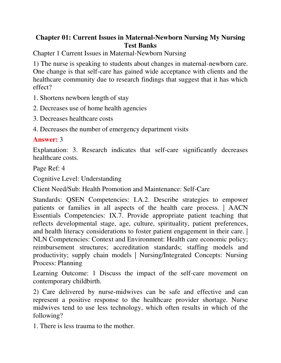 Test Bank Olds Maternal-Newborn Nursing & Womens Health Across the Lifespan (10th Edition) BY DONNIS JACKSON