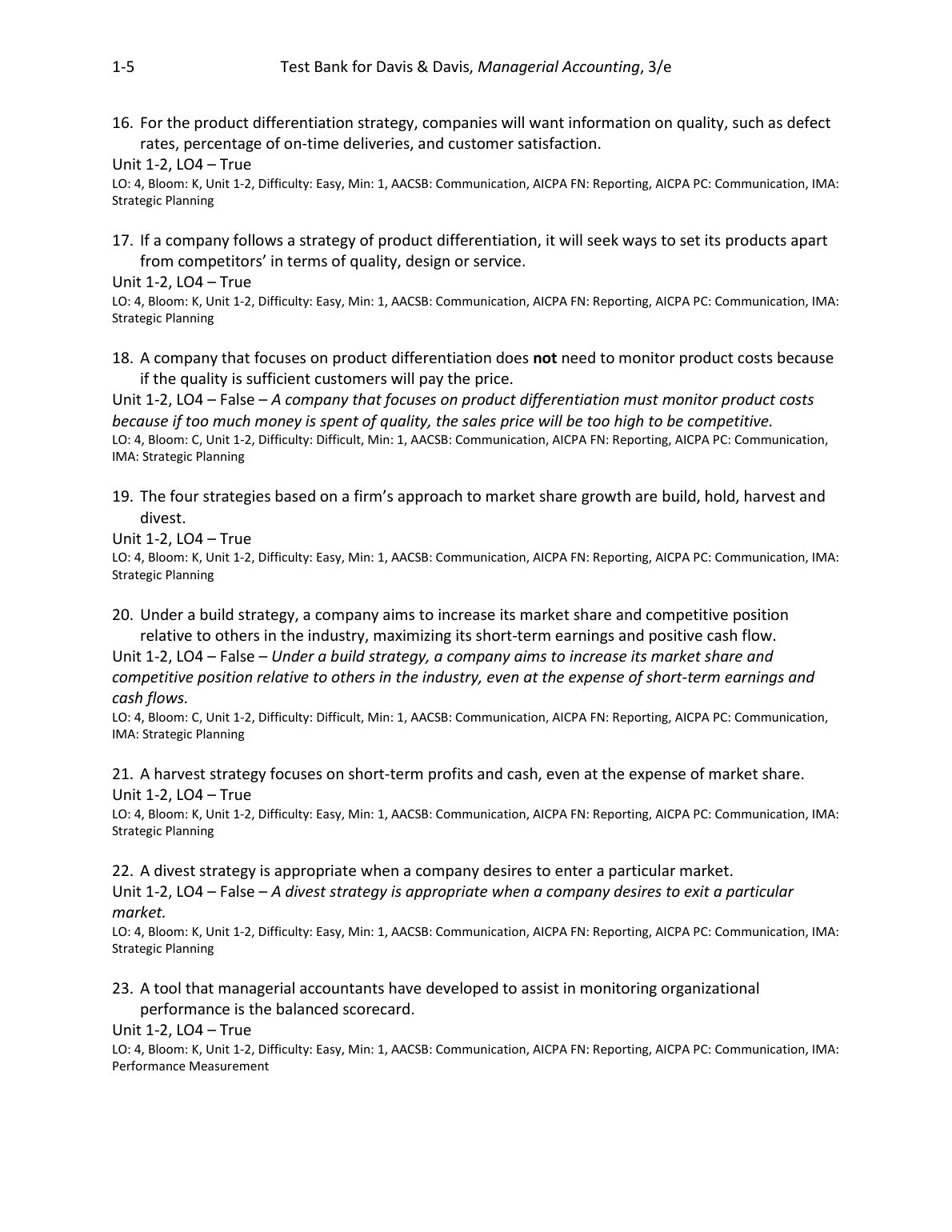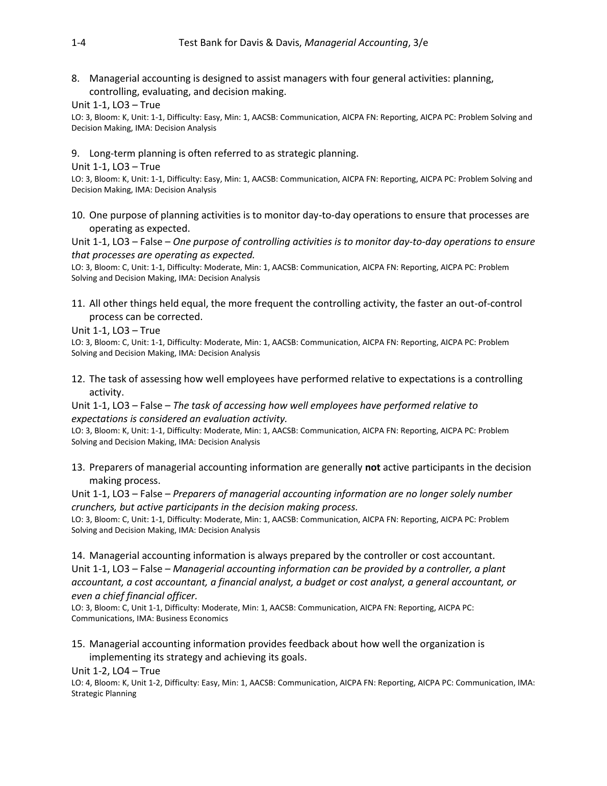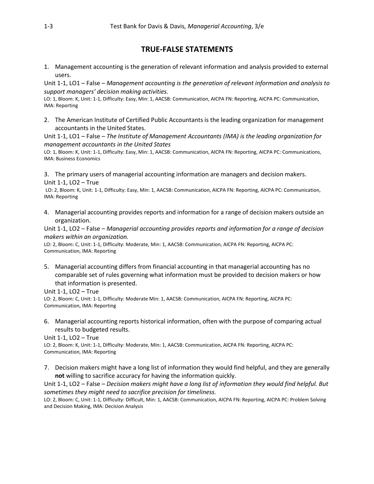 Test Bank for Managerial Accounting, 3e Charles Davis, Elizabeth Davis (All Chapters)