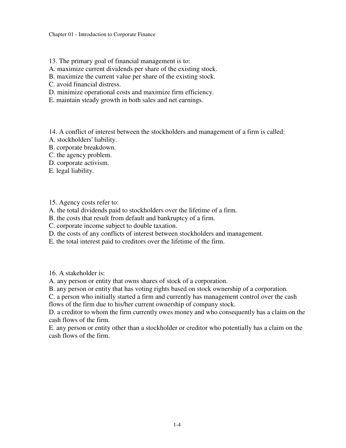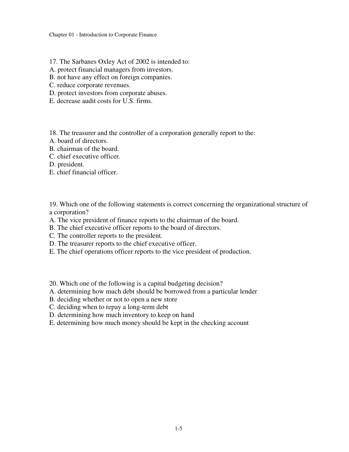 TEST BANK FOR CORPORATE FINANCE 1st ASIA GLOBAL Edition by Le Stephen, Ross Randolph, Westerfield Jeffrey, Jaffe Joseph, Lim Ruth, Tan Helen Wong