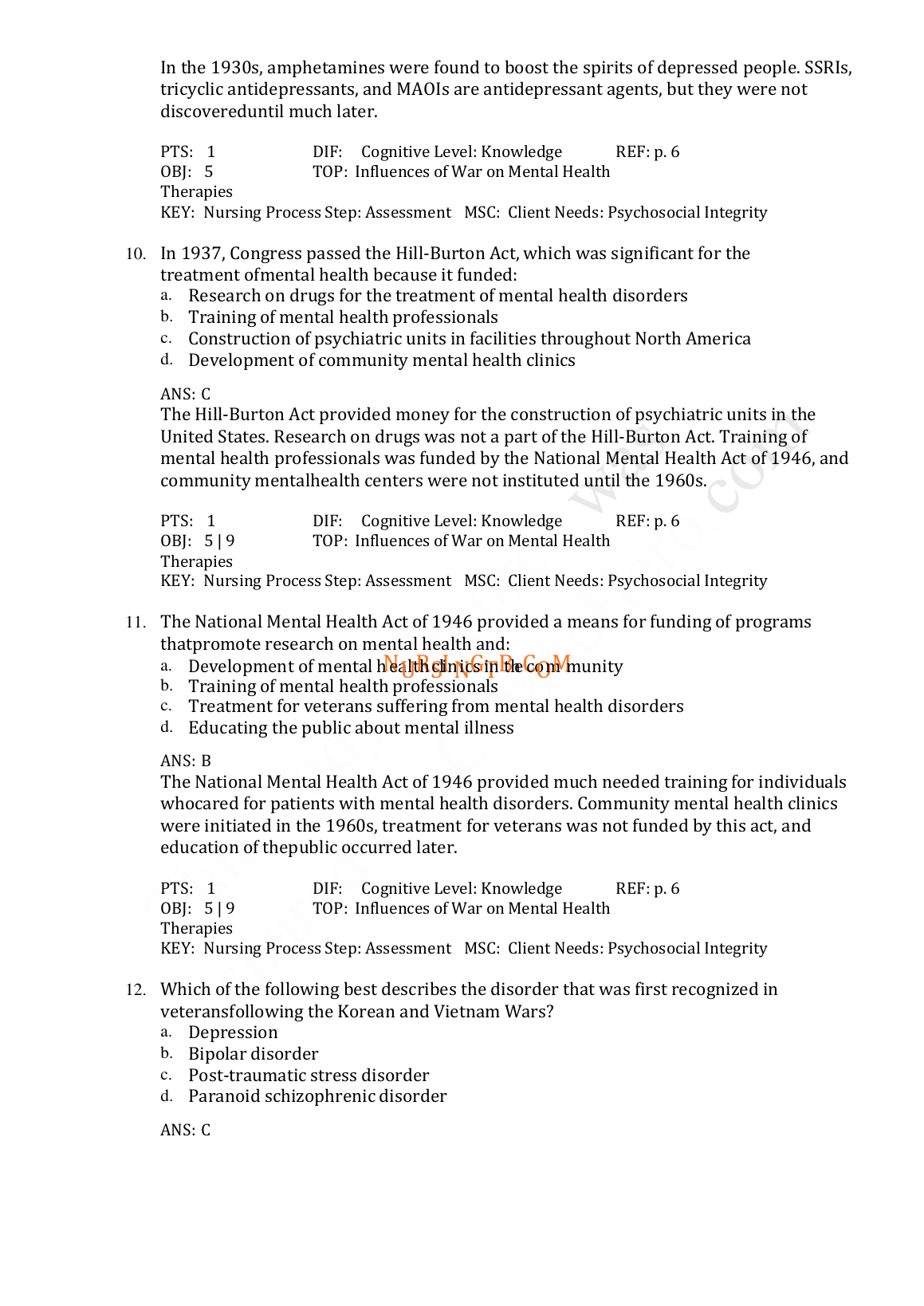 TEST BANK FOR FOUNDATIONS OF MENTAL HEALTH CARE6TH EDITIONBY MORRISON-VALFRE