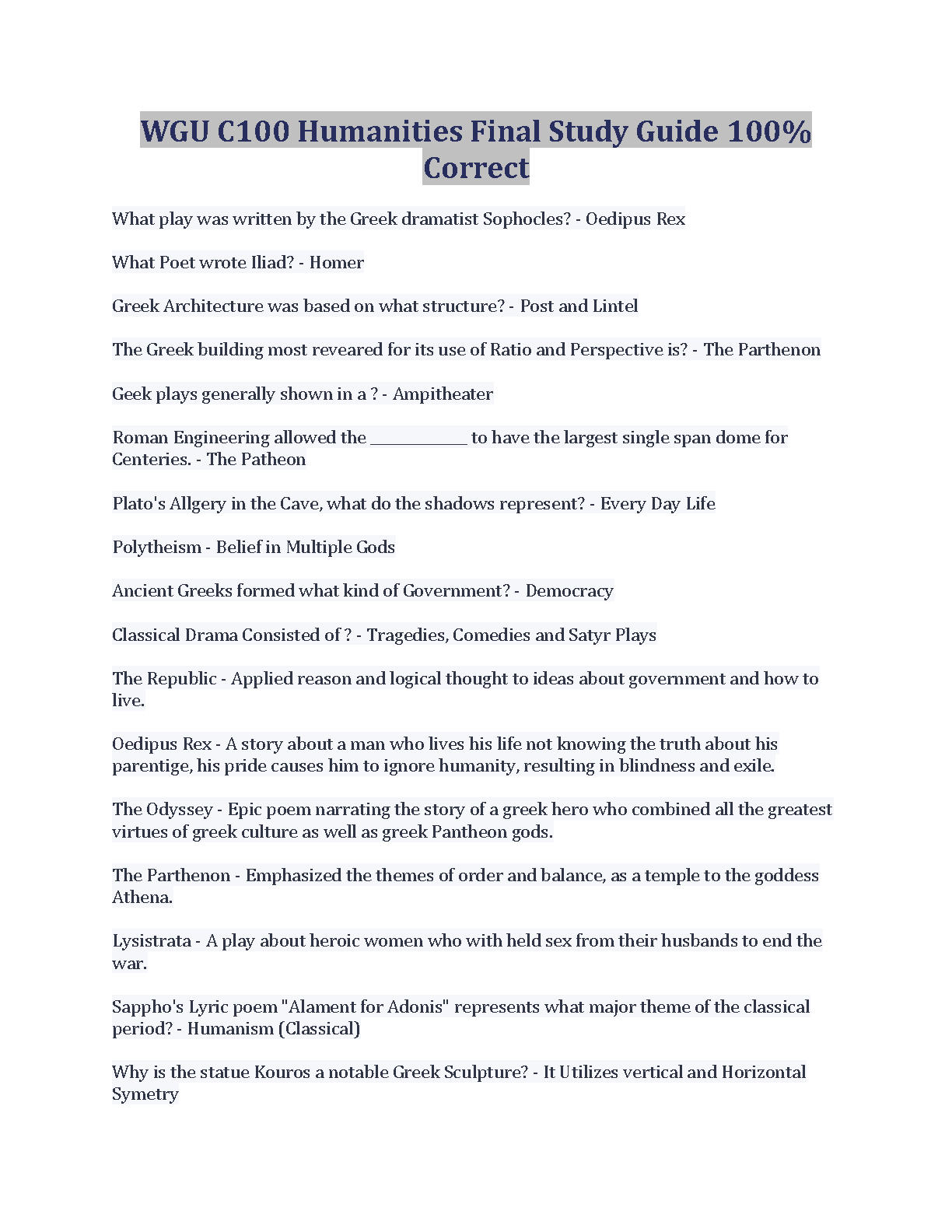 WGU C100 Humanities Final Study Guide 2024-2025: Ace Your Exams!