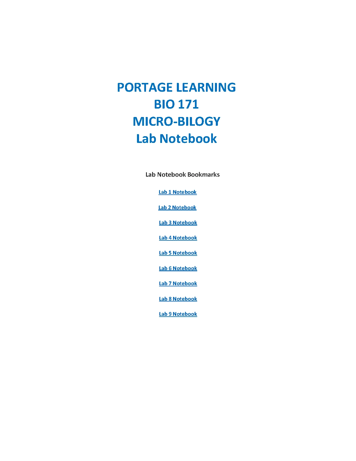 PORTAGE LEARNING BIO 171 MICRO-BILOGY Lab Notebook UPDATED VERSION FOR 2023/2024