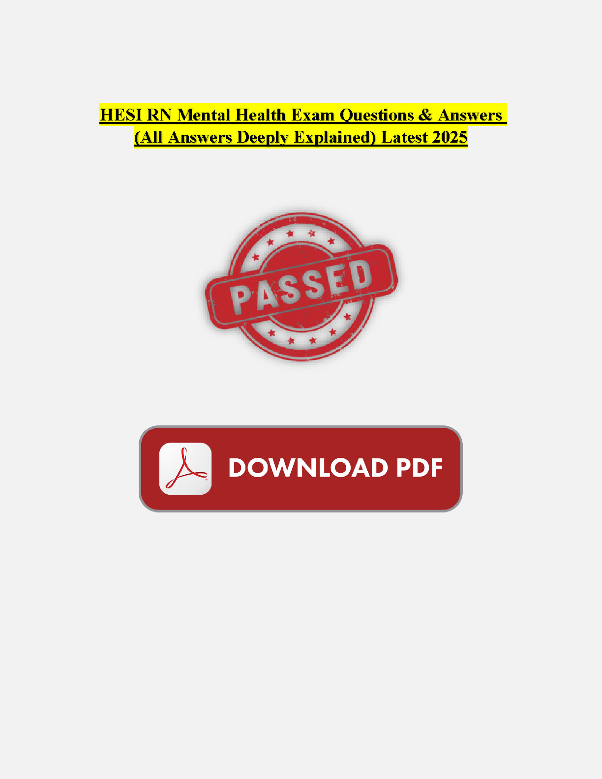 HESI RN Mental Health Exam Questions & Answers 2025 Edition: Ace Your Exam with Deeply Explained Answers