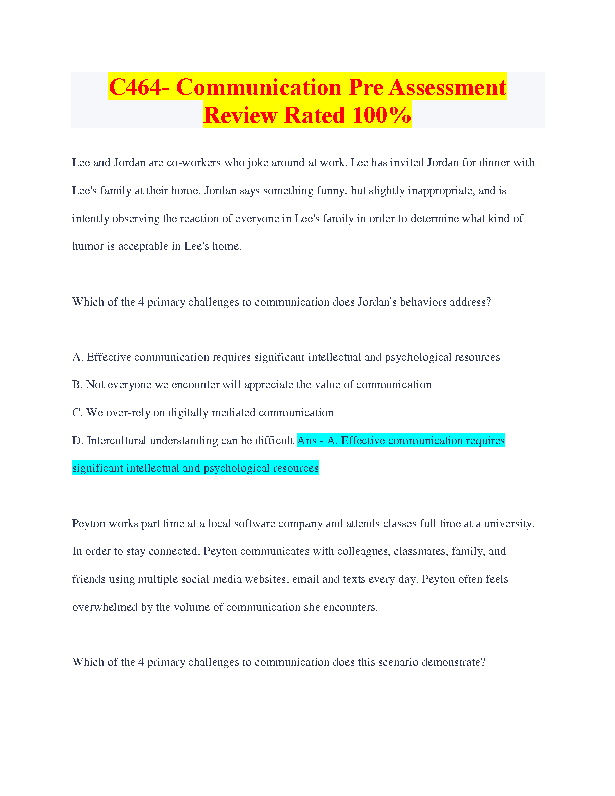 C464 Communication Pre-Assessment Review: Ace Your Exams with This 2024/2025 Guide