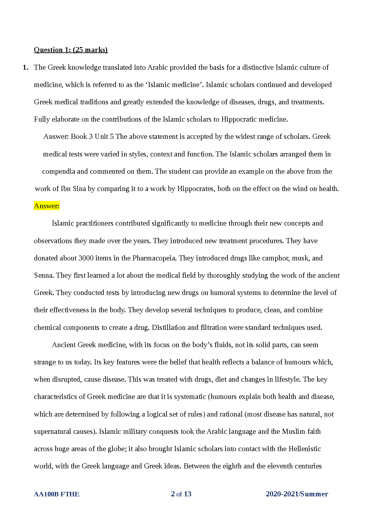 AA100B: The Humanities Past and Present II - 2020-2021 Summer Exam - Arab Open University