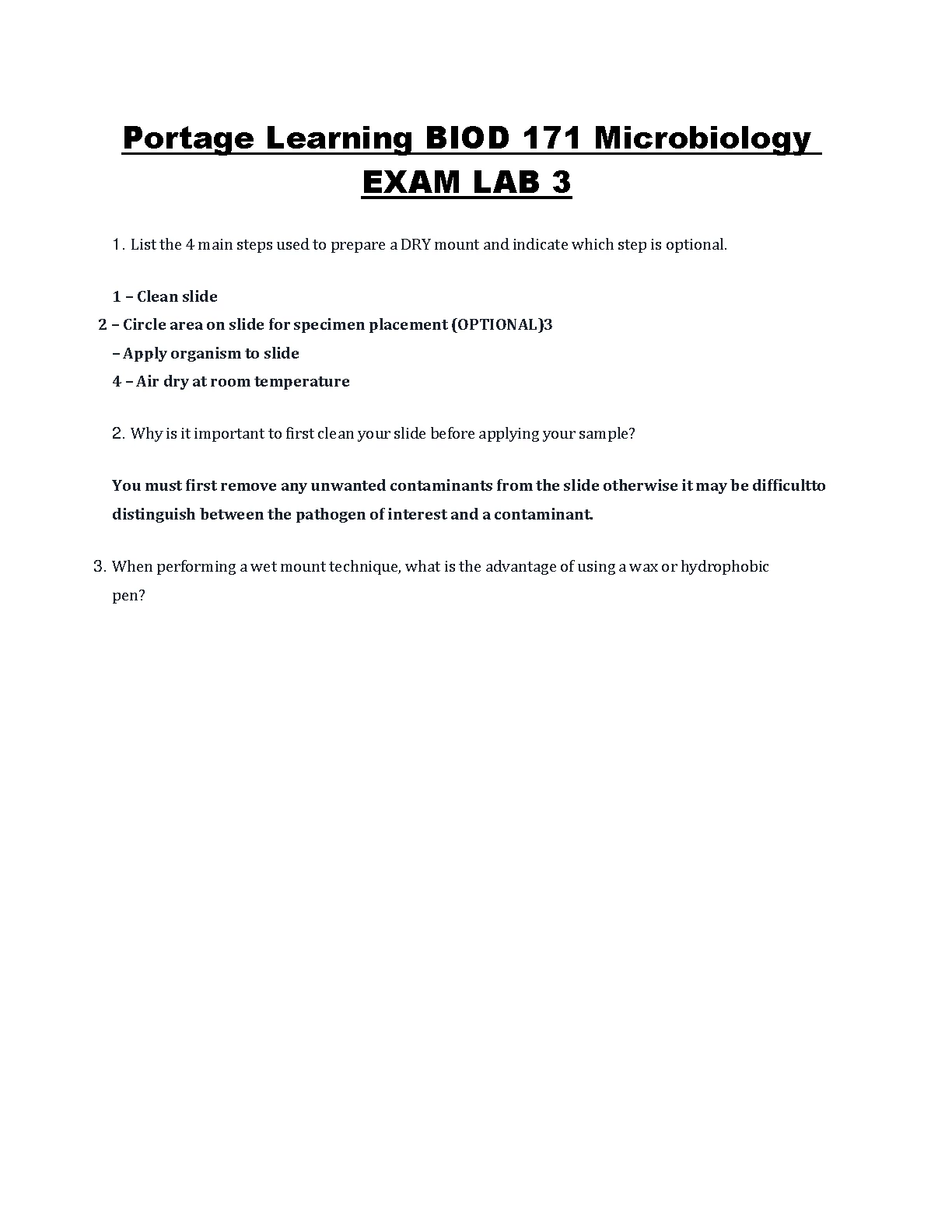 Portage Learning BIOD 171 Microbiology EXAM LAB 3 COMPLETE SOLUTION GUIDE . DOWNLOAD on www.hackedexams.com INSTANTLY.