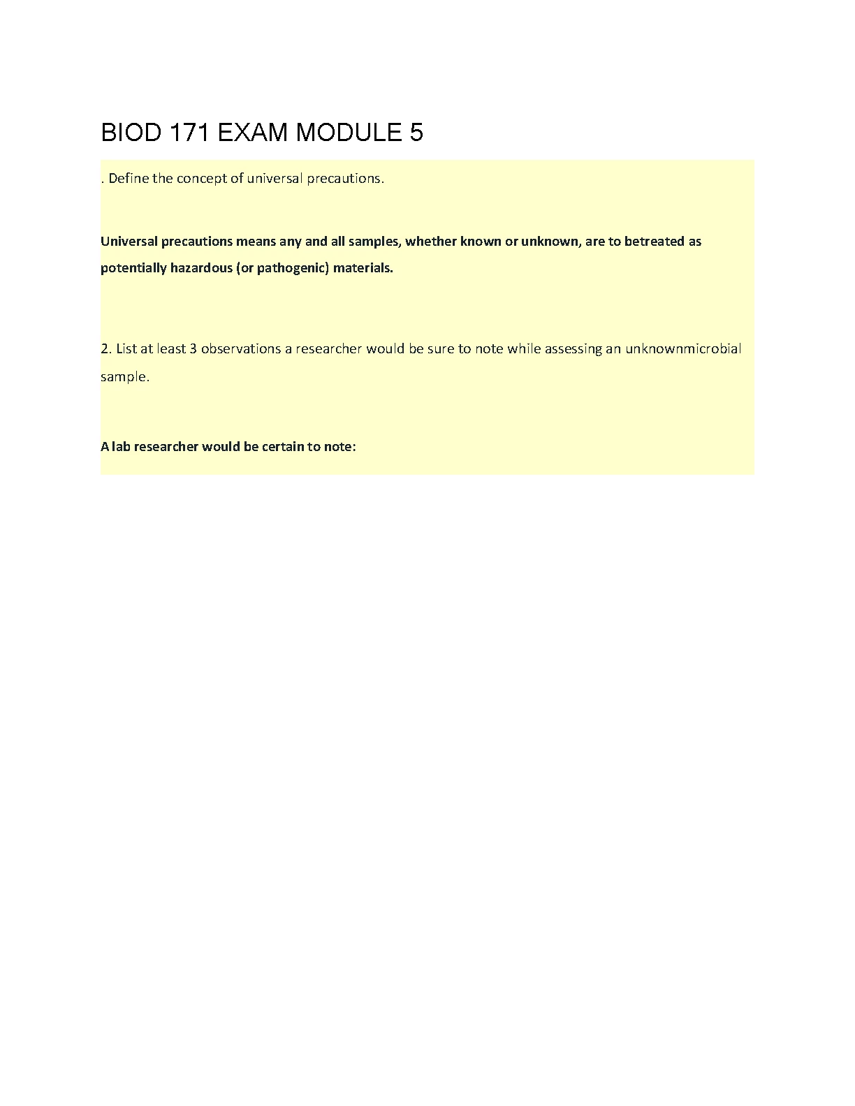 BIOD 171 EXAM MODULE 5 COMPLETE WITH CORRECT ANSWERS 2023