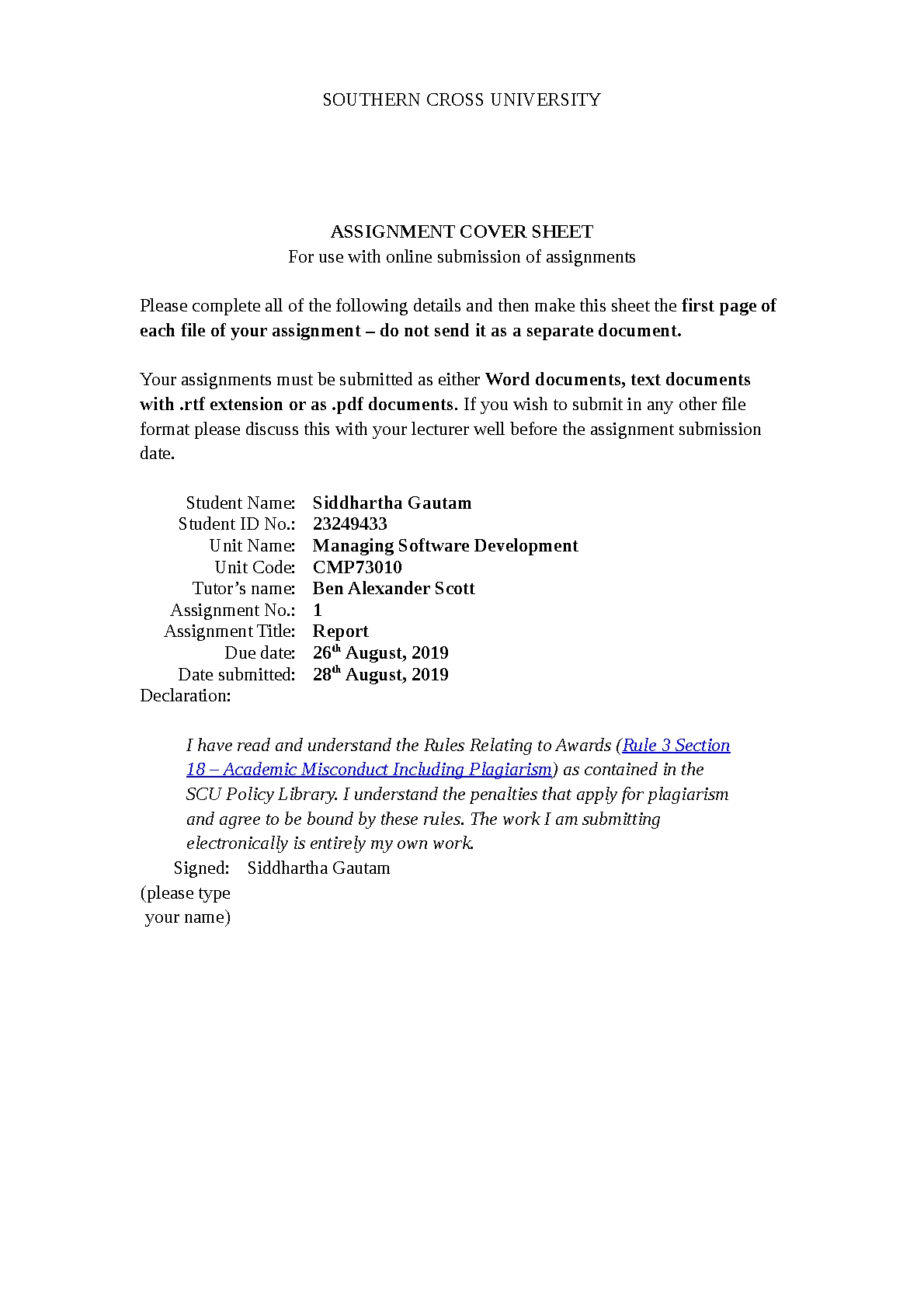 SOUTHERN CROSS UNIVERSITY ASSIGNMENT COMPLETE SOLUTION 2023/2024