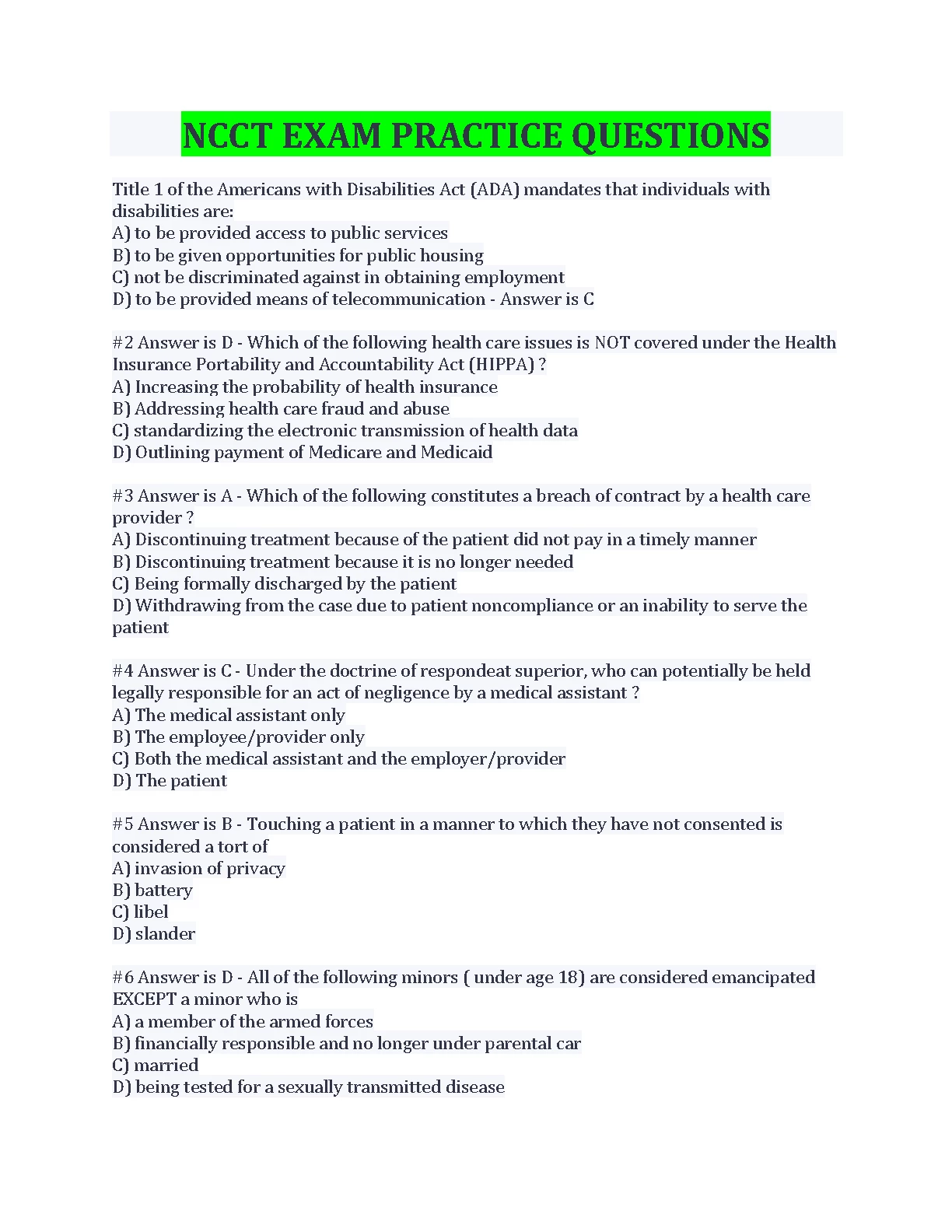NCCT EXAM PRACTICE QUESTIONS AND CORRECT ANSWERS GRADED A+