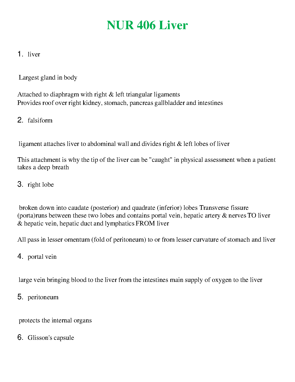 NUR 406 Liver: Comprehensive Study Guide for 2025/2026 Academic Year