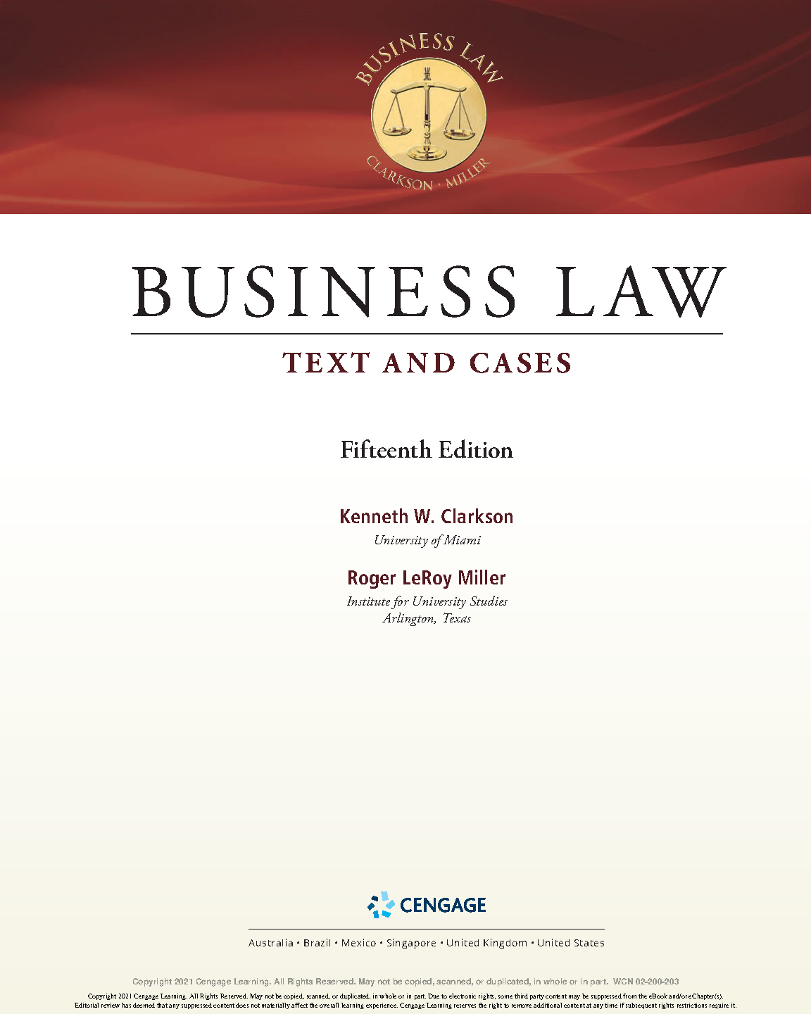 Clarkson & Miller's Business Law: Text and Cases, Fifteenth Edition - Mastering Business Law for 2025/2026 Success
