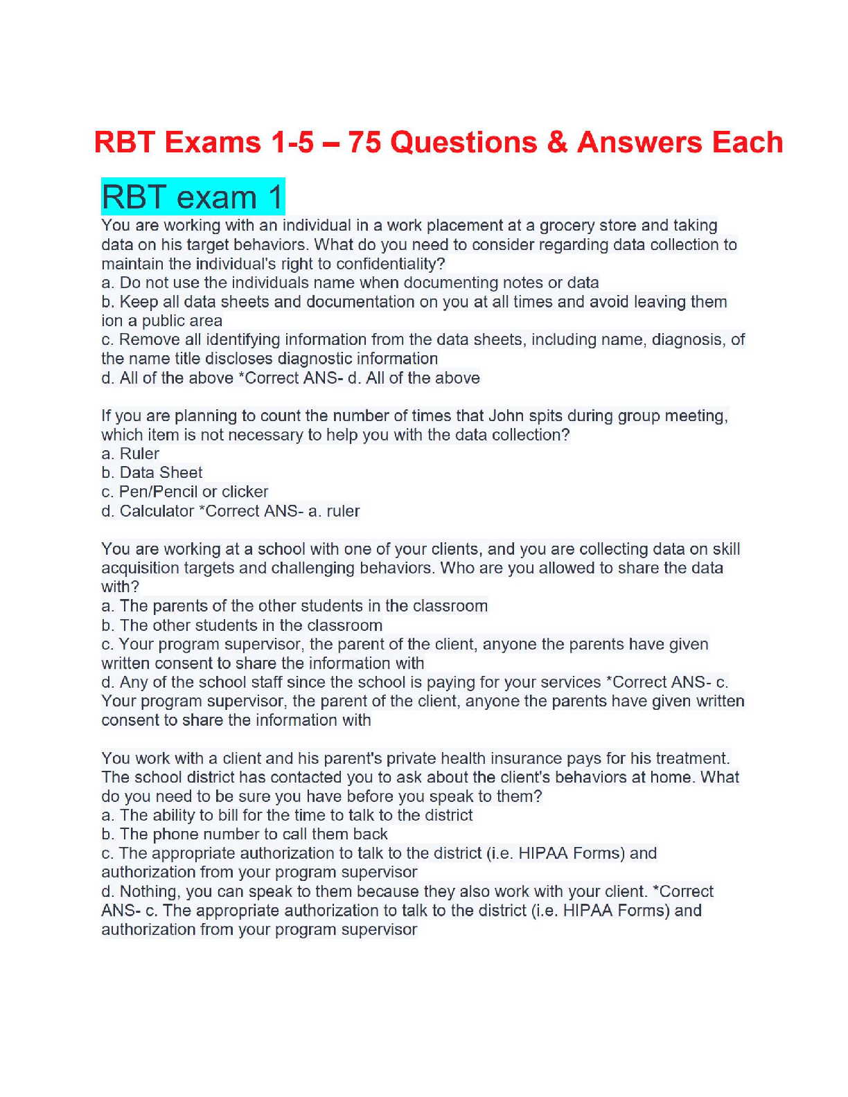 Master RBT exam preparation with this essential resource, featuring 75 practice questions and answers covering RBT Exams 1-5. Designed to help students ace their exams on the first attempt and avoid resits, this guide ensures you are fully prepared for the 2025/2026 academic year. Enhance your understanding of key concepts and test-taking strategies for success.