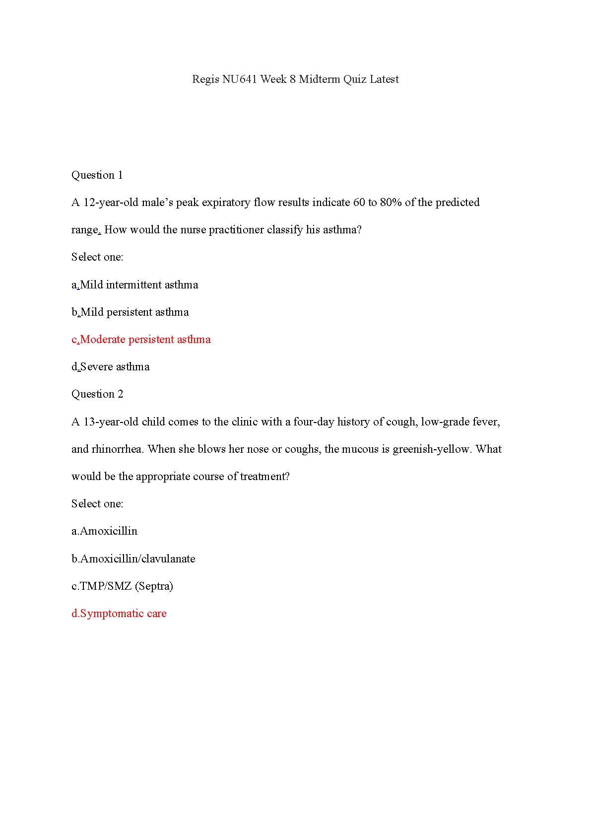 Regis NU641 Week 8 Midterm Quiz Latest: Comprehensive Questions and Answers for 2025/2026 Academic Year