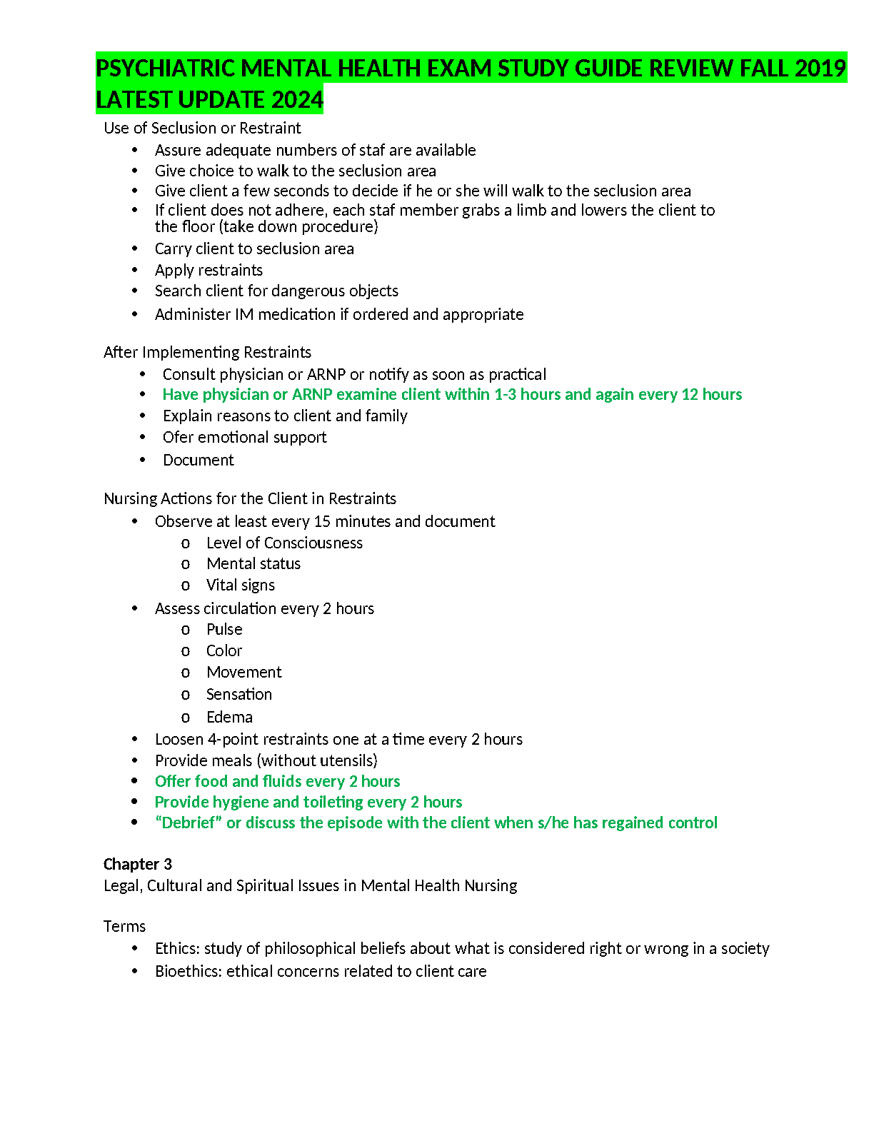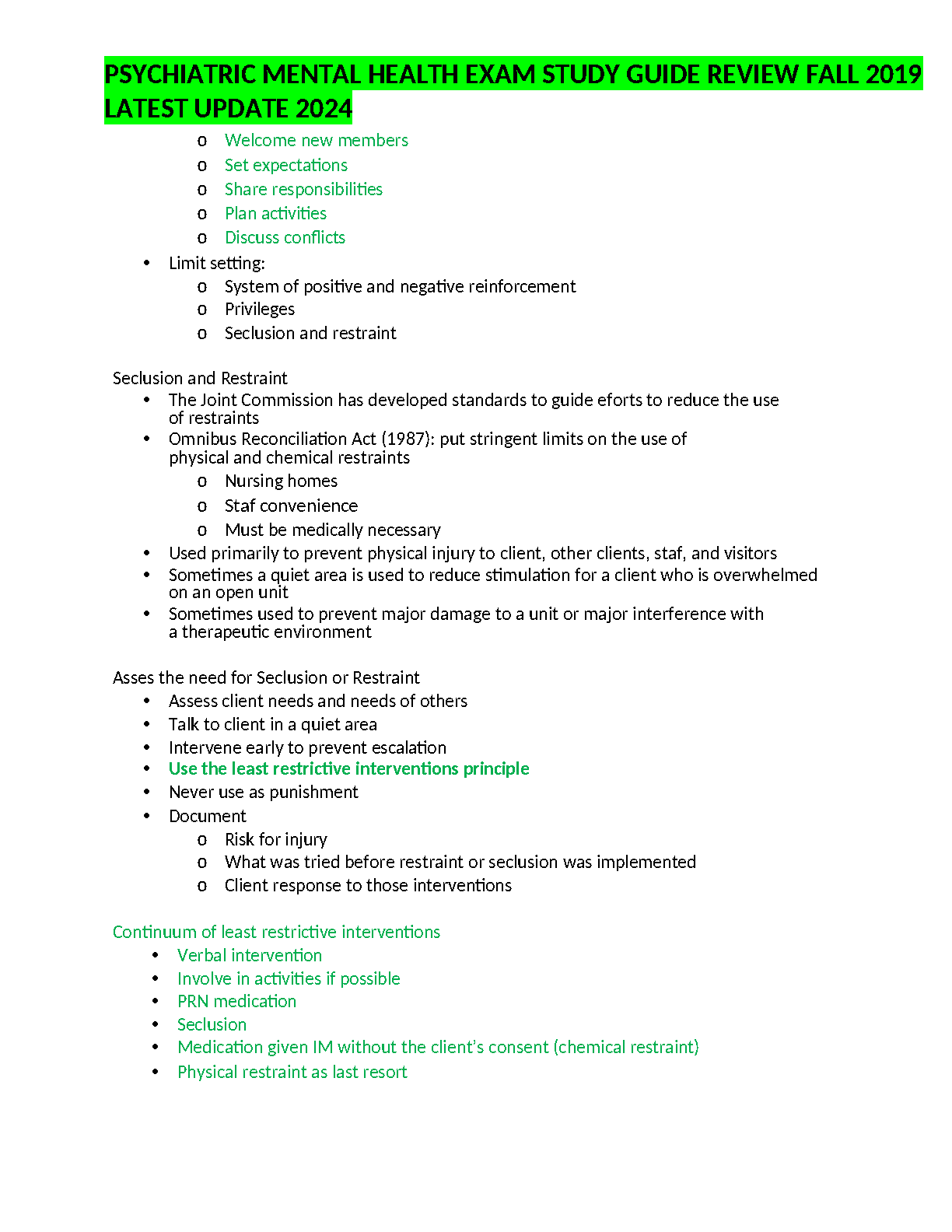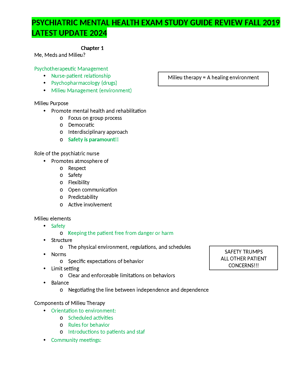 Psychiatric Mental Health Nursing Exam Prep: Milieu Therapy & Psychopharmacology Study Guide (Fall 2019 Update)