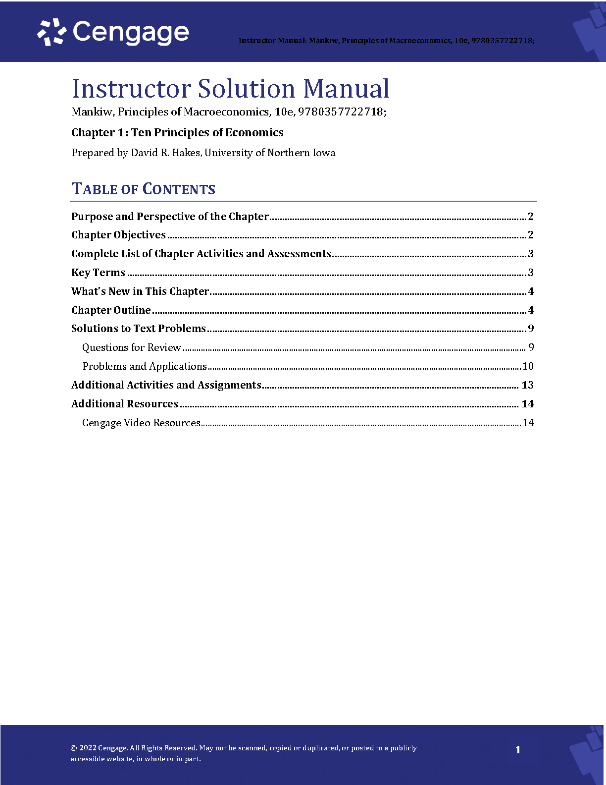 Comprehensive Instructor Solution Manual: Principles of Macroeconomics, 10th Edition by N. Gregory Mankiw (ISBN 9780357722718)