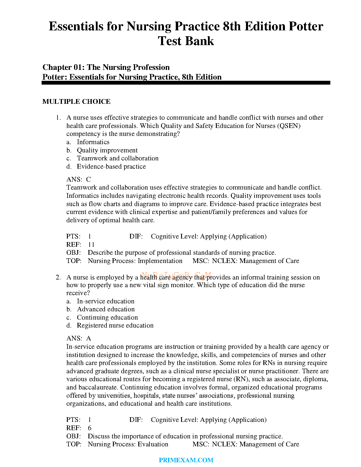 Gain an unparalleled advantage in your nursing education with the official 'Essentials for Nursing Practice, 8th Edition' Test Bank, authored by Patricia A. Potter and Anne Griffin Perry. Tailored for the 2025/2026 academic year, this essential resource features comprehensive multiple-choice questions, accurate answers, and detailed rationales from core chapters like 'The Nursing Profession.' Designed to enhance your understanding, boost your confidence, and streamline your study process, it's the perfect tool to prepare effectively, ensure you pass your nursing exams on the very first attempt, and avoid the stress of resits.