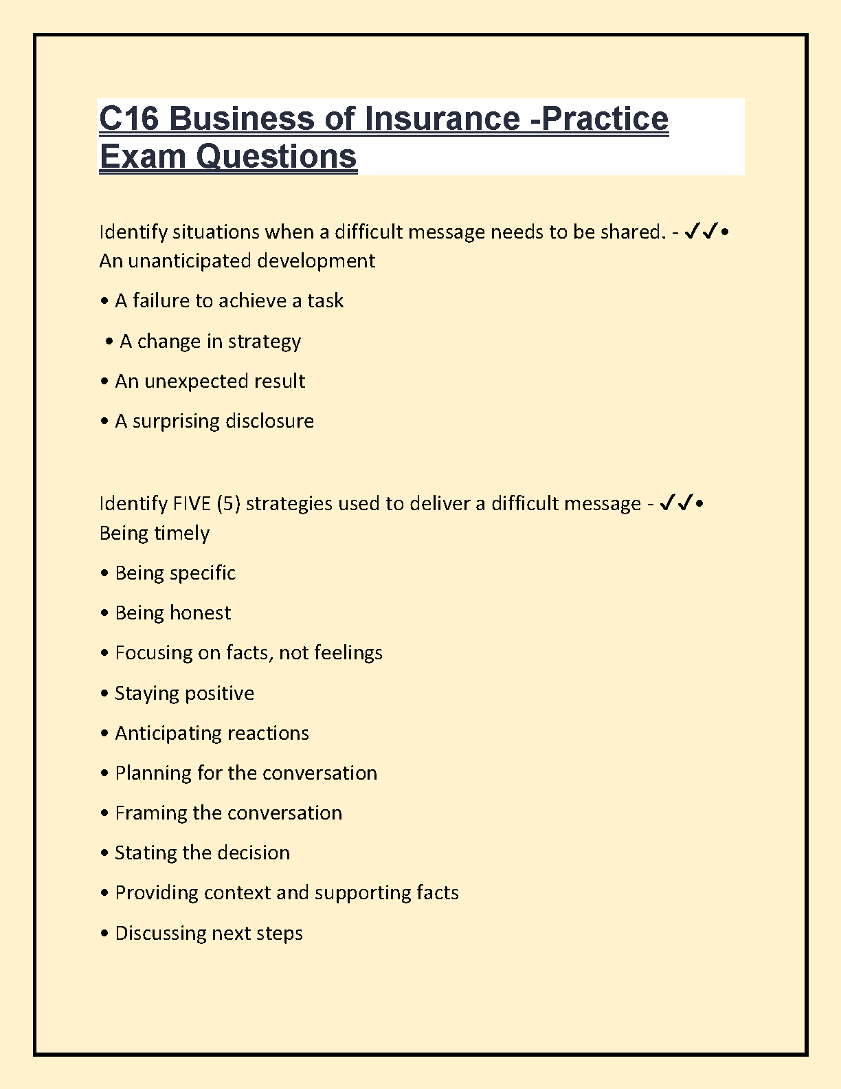 Master the 'Business of Insurance' with this comprehensive practice exam resource, designed to help students excel in their 2025/2026 academic year. Covering key topics such as handling difficult messages and effective communication strategies, these questions are tailored to ensure first-time exam success and avoid resits. Get a firm grasp of insurance principles and boost your confidence for your upcoming assessments.