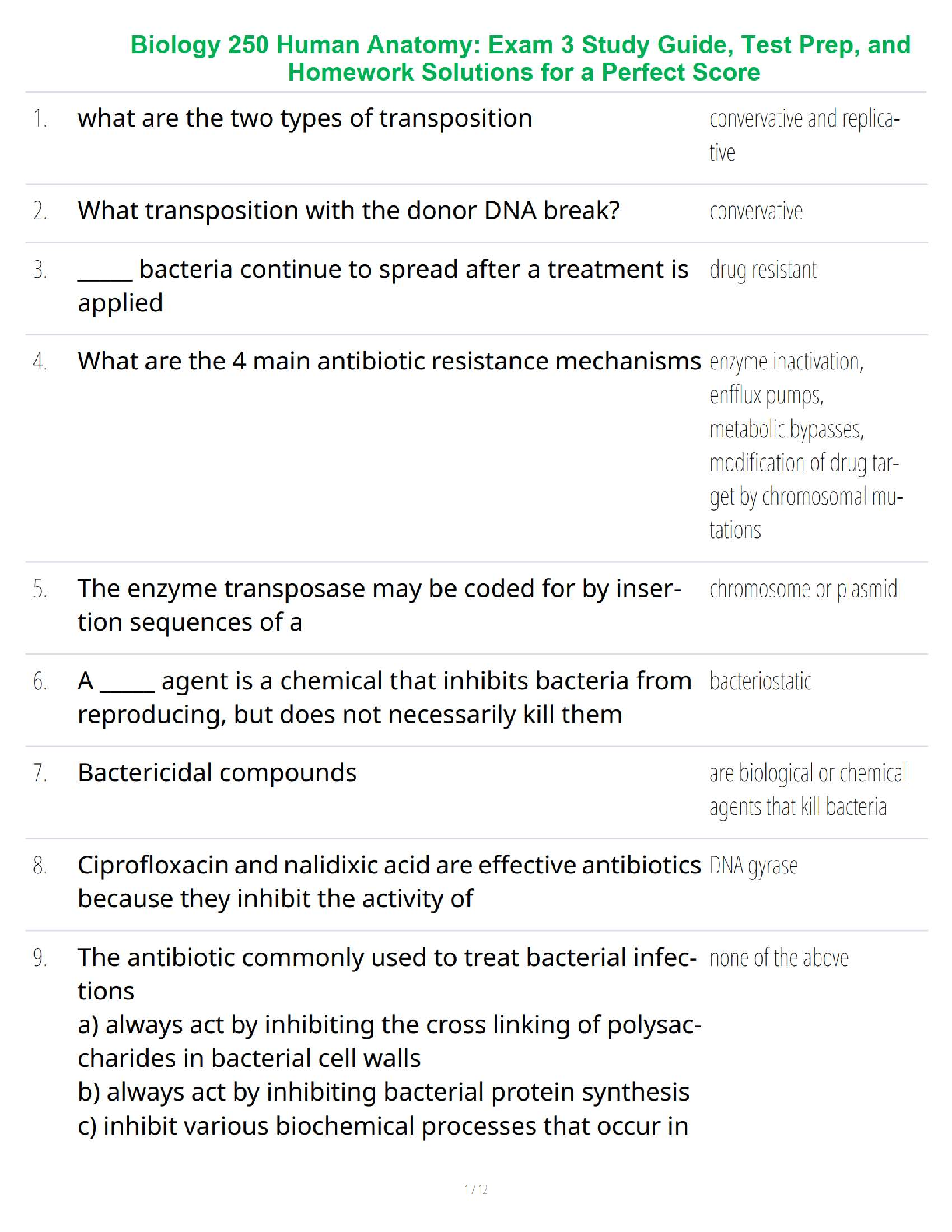Master Human Anatomy Exam 3 with this comprehensive study guide. Featuring targeted test preparation and detailed homework solutions, this resource is designed to ensure students excel and avoid resits for the 2025/2026 academic year. Covers key concepts like transposition, antibiotic resistance mechanisms, and bactericidal agents.