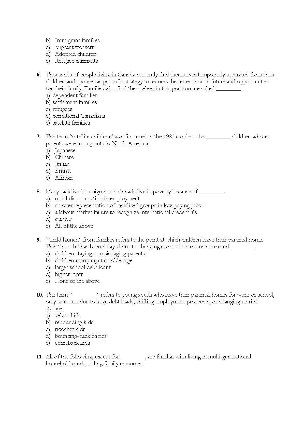 Official Test Bank for Canadian Families Today, 4th Edition by Patrizia Albanese - Comprehensive Exam Preparation