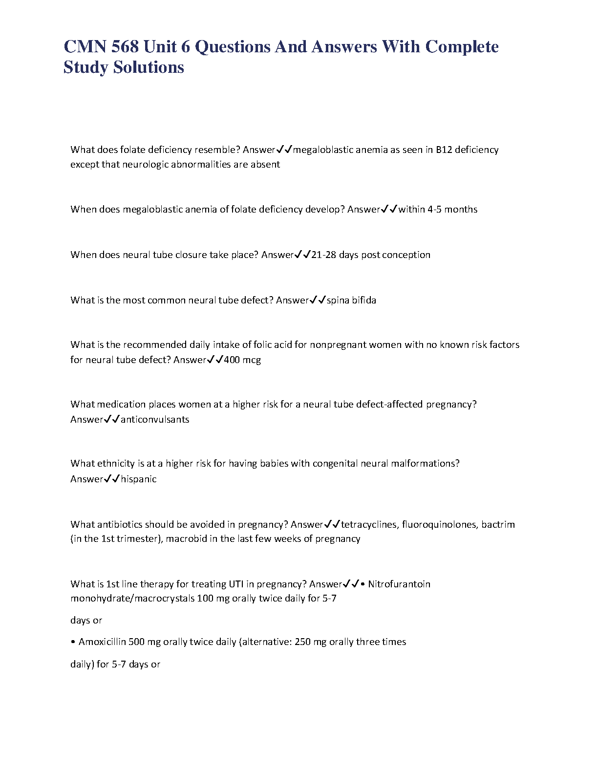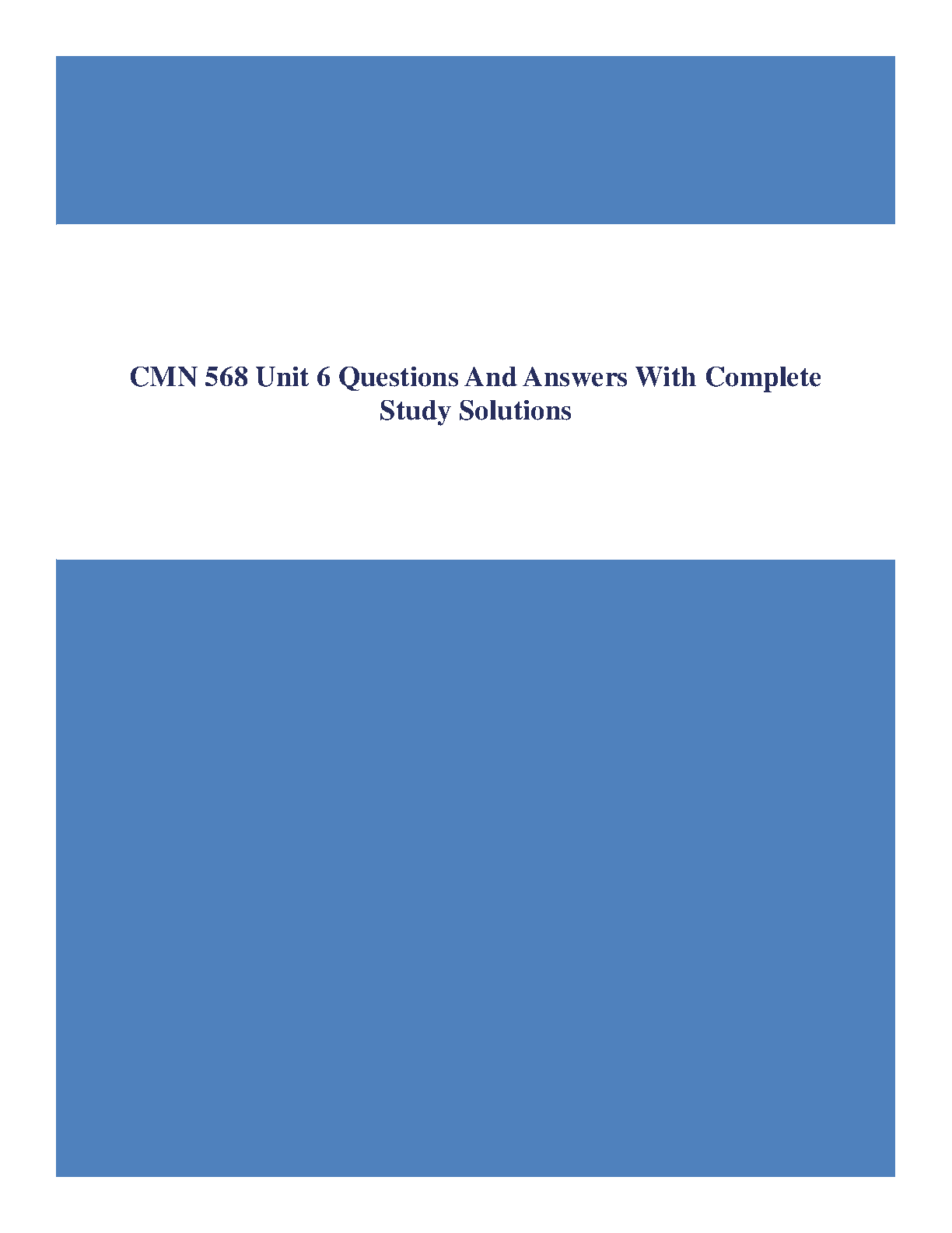 CMN 568 Unit 6 Comprehensive Test Bank: Exam Prep Questions, Answers, and Detailed Solutions for 2025/2026 Academic Success