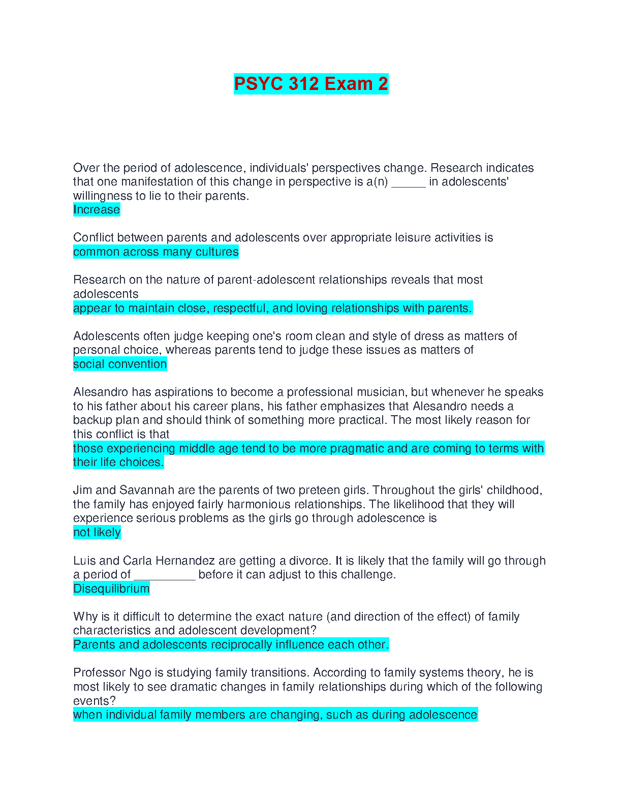 Dive into this comprehensive test bank for PSYC 312 Exam 2, meticulously crafted to align with Laurence Steinberg's seminal 'Adolescence' (14th Edition) textbook. This essential resource covers crucial topics in adolescent development, including shifts in individual perspectives, parent-adolescent conflict and relationships, social conventions, family transitions, and developmental influences. Featuring exam-style questions with accurate, highlighted answers, it serves as an invaluable study aid. Prepare effectively, grasp core concepts, and build confidence to ace your PSYC 312 exams on your first attempt for the 2025/2026 academic year, ensuring you avoid costly resits.