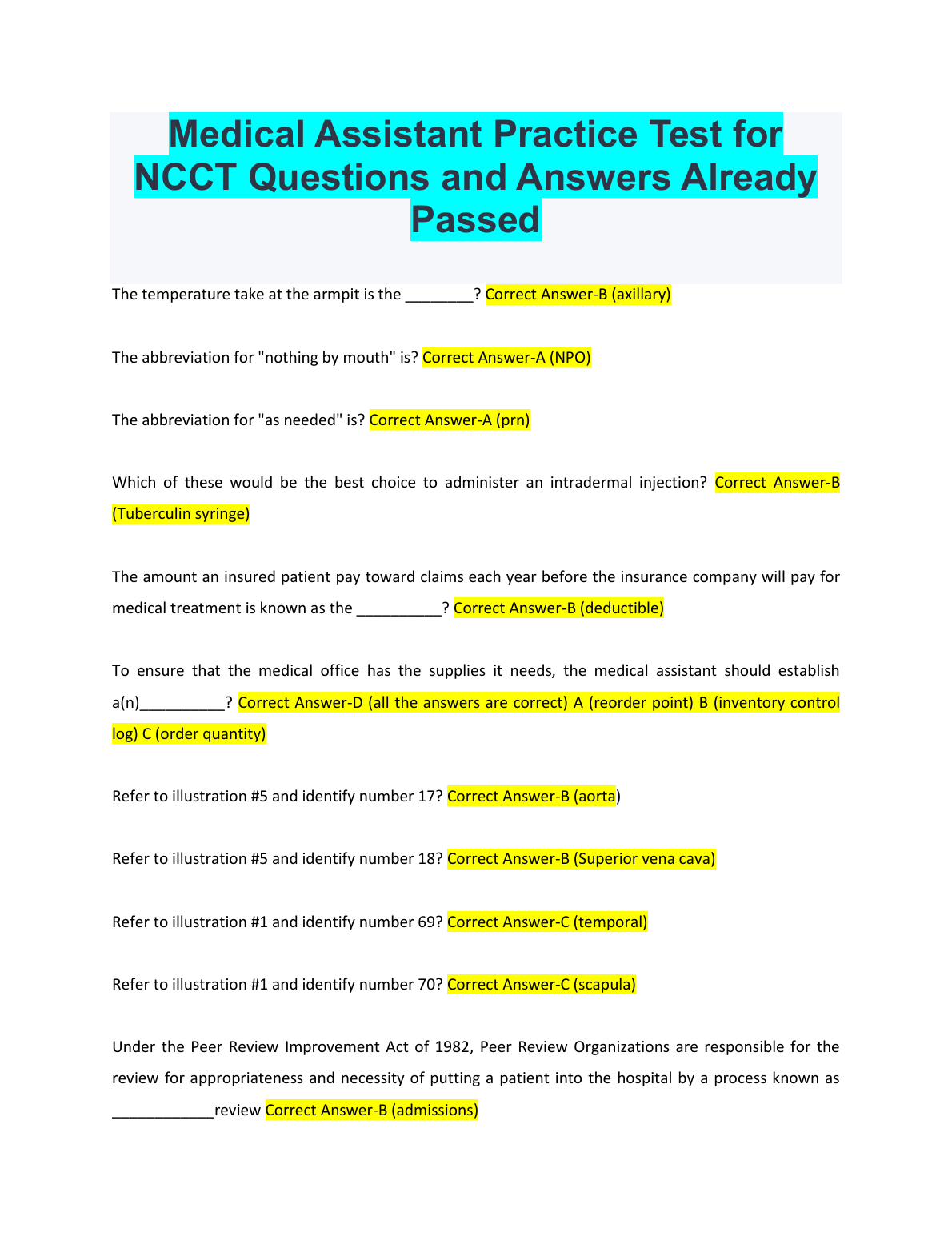 Medical Assistant Practice Test for NCCT Questions and Answers Already Passed GRADED A+. DOWNLOAD on www.hackedexams.com INSTANTLY.