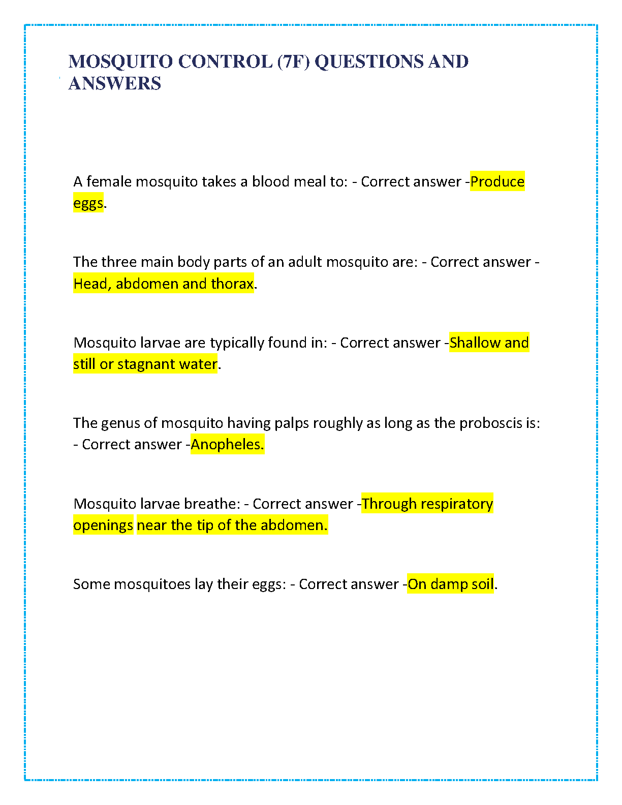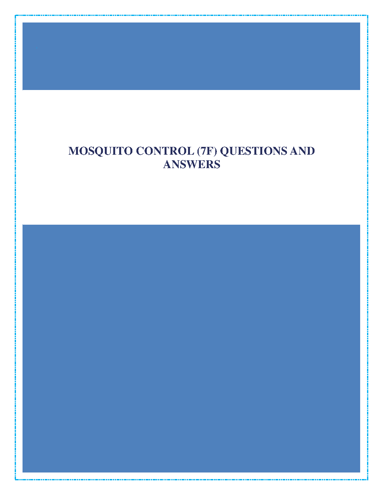 Mosquito Control (7F) Test Bank: Comprehensive Questions & Answers for 2025/2026 Exam Success - Pass First Attempt
