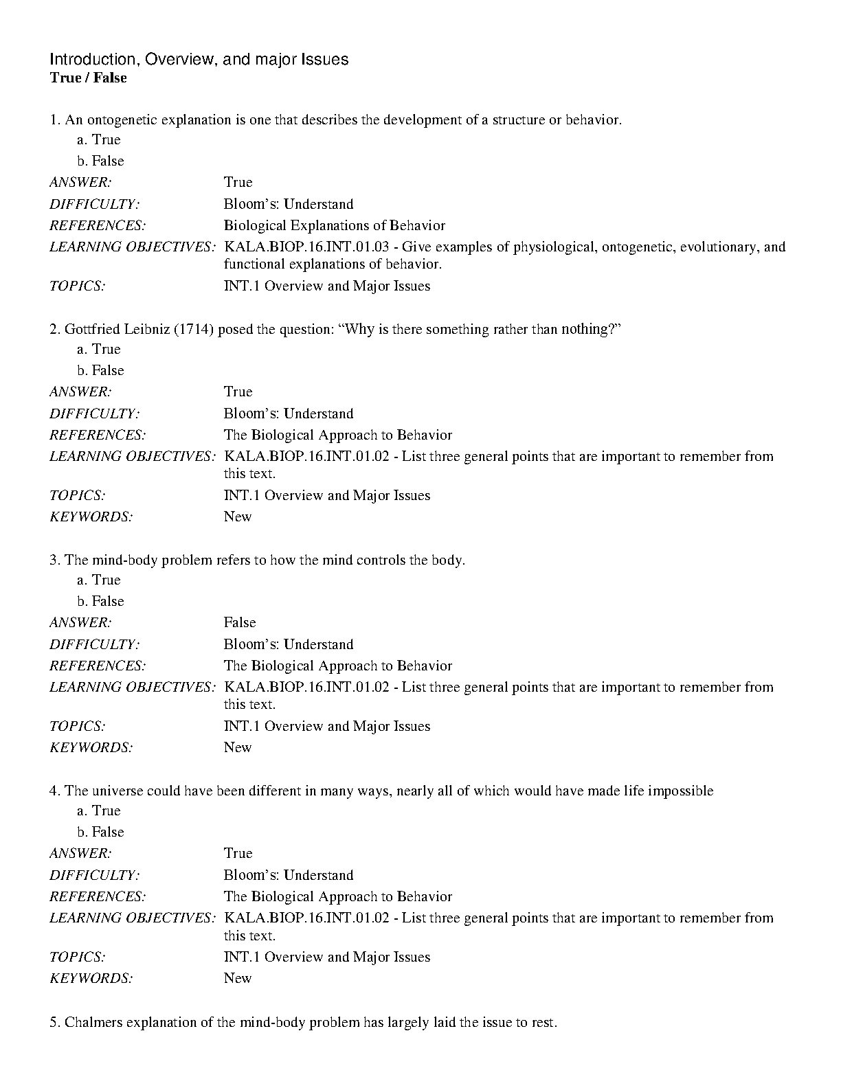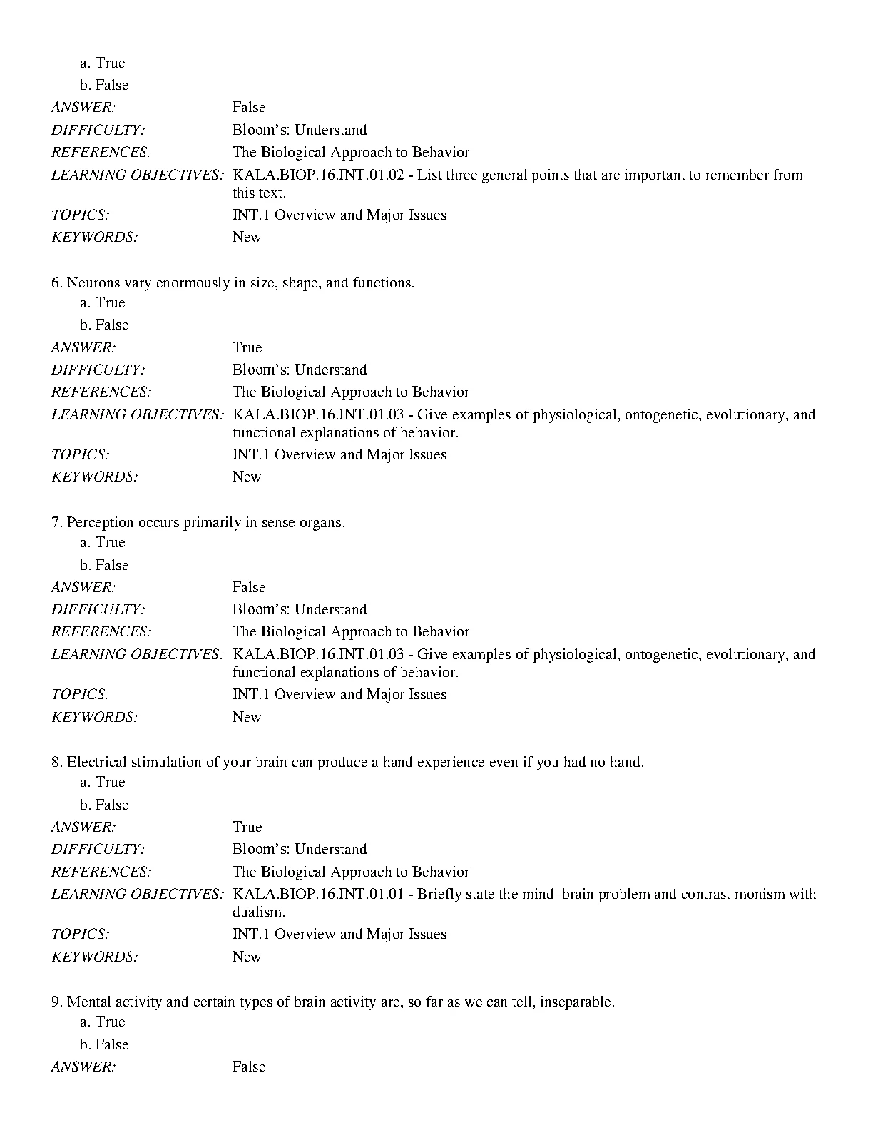 Biological Psychology 12th edition by James w Kalat TEST BANK COMPLETE WITH ALL CHAPTERS