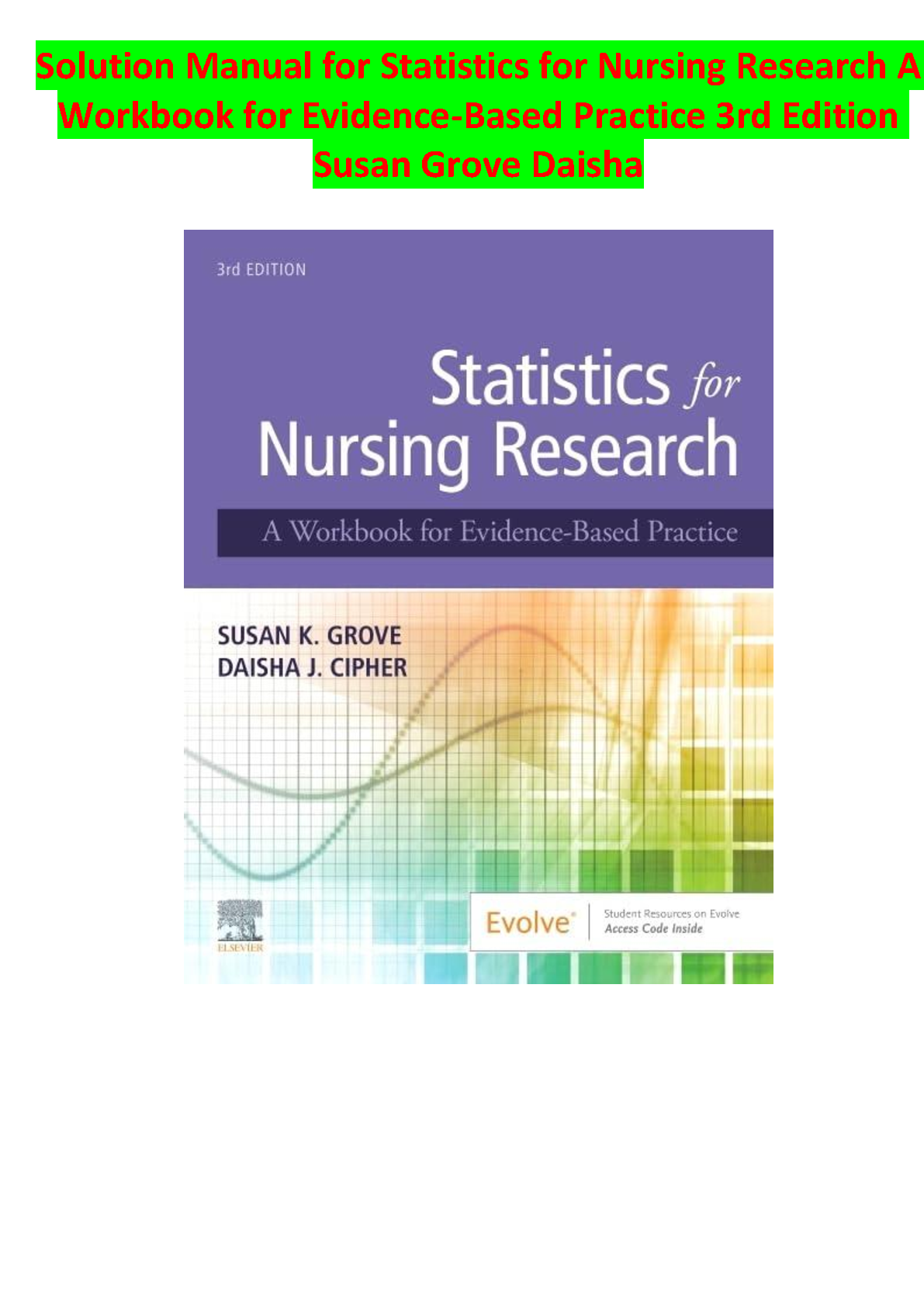 Ace your nursing research statistics course with this comprehensive solution manual for the 3rd edition of Statistics for Nursing Research by Susan K. Grove and Daisha J. Cipher. This resource provides detailed answers and explanations to all the workbook exercises, ensuring a thorough understanding of statistical concepts and their application in evidence-based nursing practice. Perfect for mastering the material and achieving exam success on your first attempt.