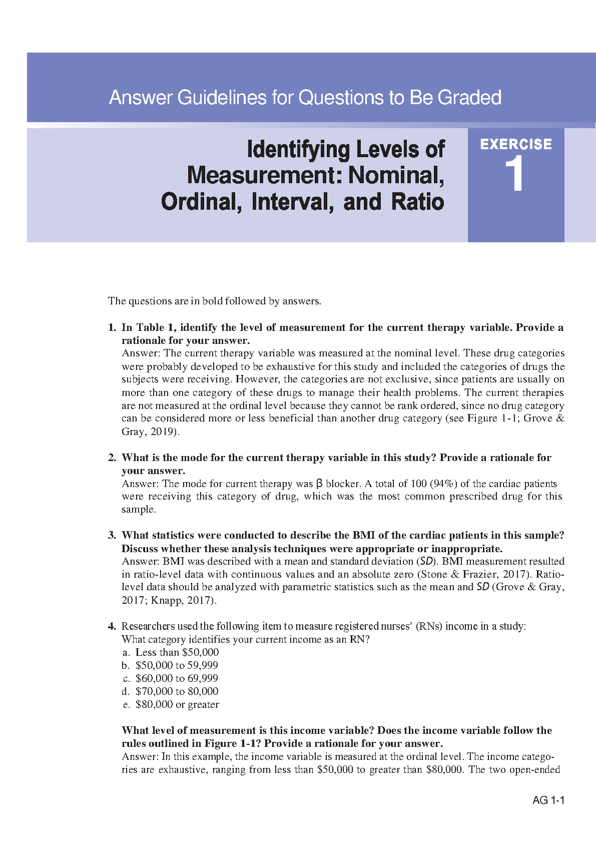 Statistics for Nursing Research: A Workbook for Evidence-Based Practice, 3rd Edition - Solution Manual by Susan K. Grove and Daisha J. Cipher