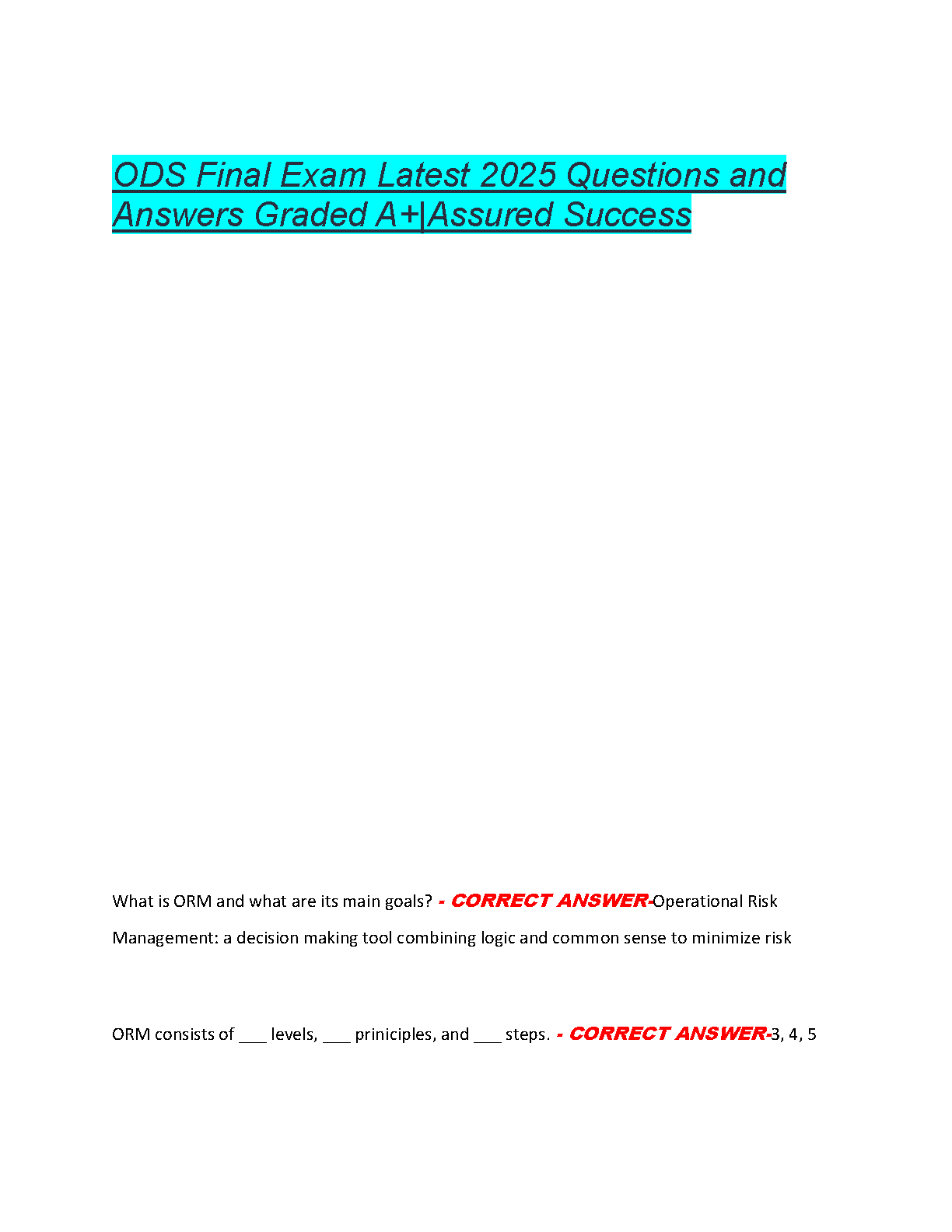 Prepare for your ODS final exam with confidence using this comprehensive guide containing the latest 2025 questions and answers. All solutions are graded A+ ensuring your success and avoiding resits. Master key concepts and achieve your academic goals.