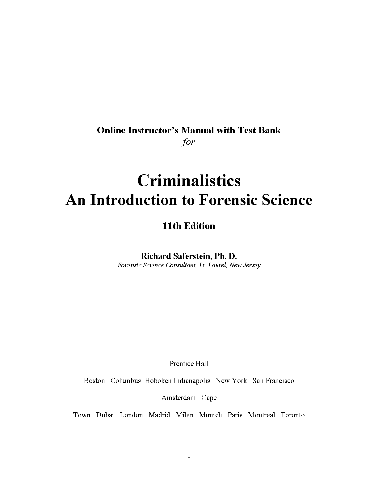 Ace your Forensic Science exams with this comprehensive test bank for Richard Saferstein's Criminalistics, 11th Edition. This resource provides instructors with a wide range of questions to assess student understanding, ensuring effective exam preparation and higher success rates.
