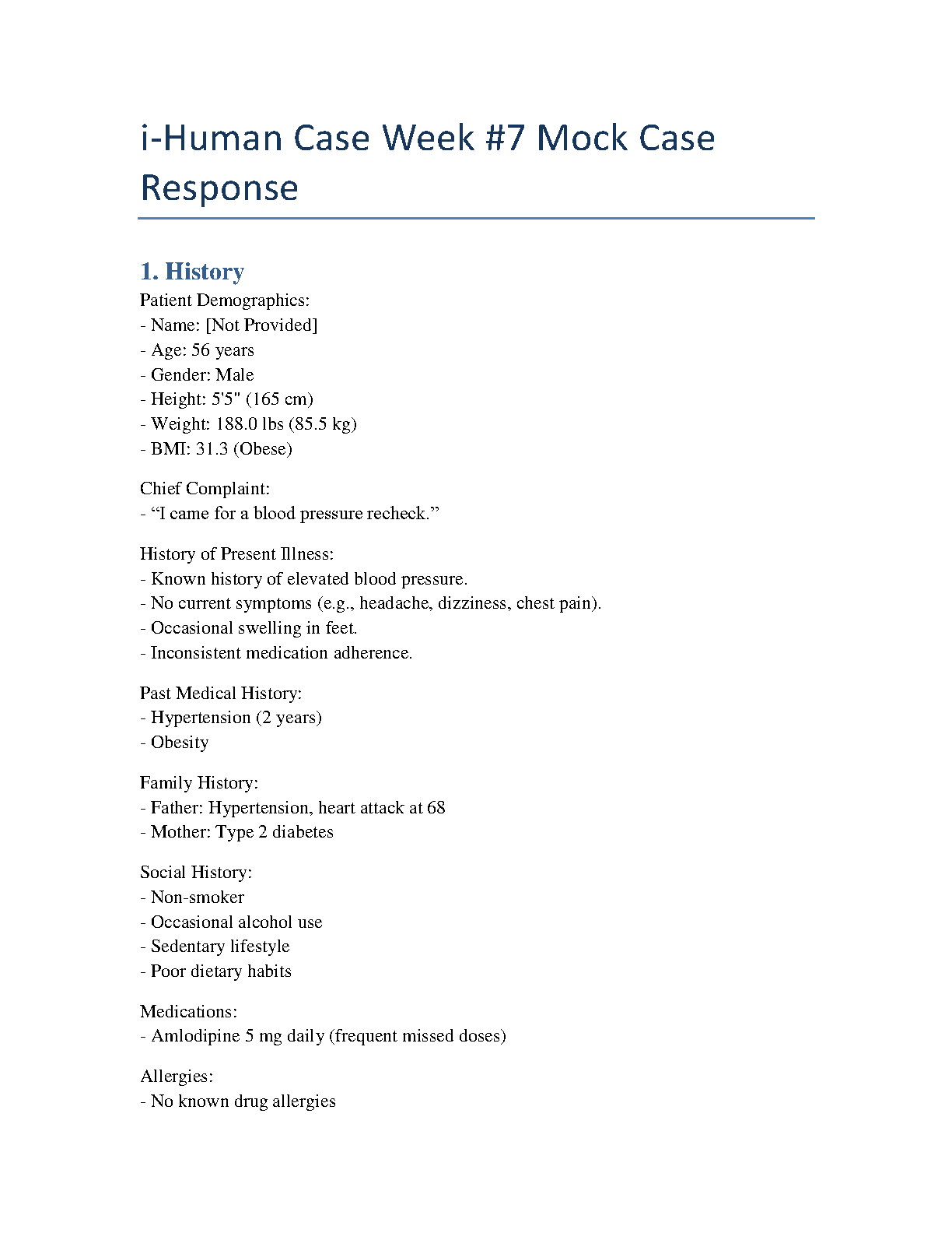 i-Human Case Week 7 Mock Case Response: A 2024-2025 Guide for Nursing Students