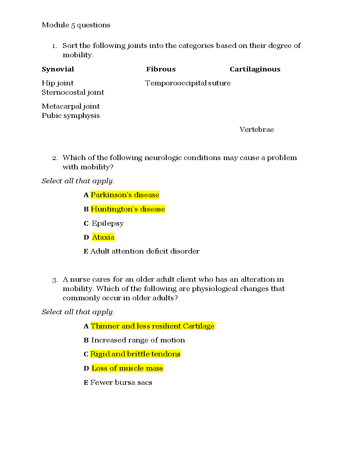 Ace your Anatomy and Physiology exams with this comprehensive module 5 practice question set, designed to help you pass on your first attempt. This resource covers key concepts, including joint classifications and neurological conditions affecting mobility, to enhance your understanding and exam performance. Ideal for 2024-2025 academic year.