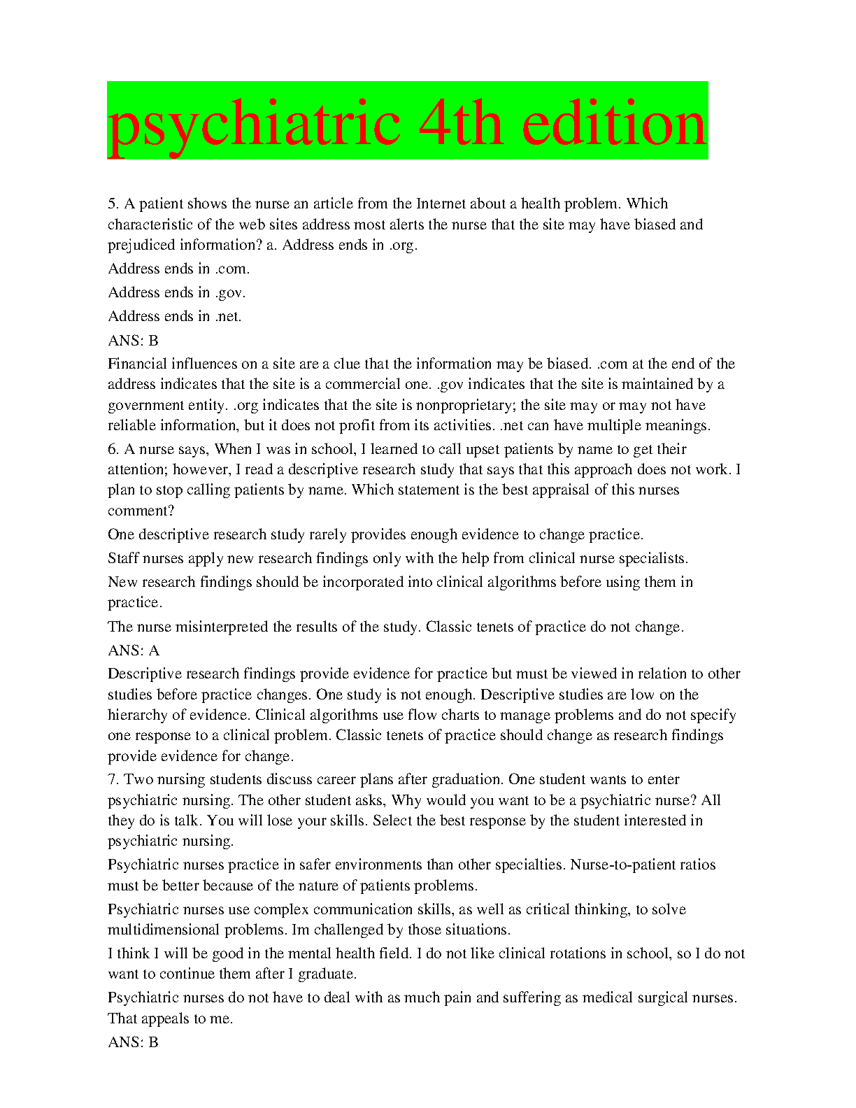 Psychiatric Nursing 4th Edition Test Bank by [Complete Author Names]