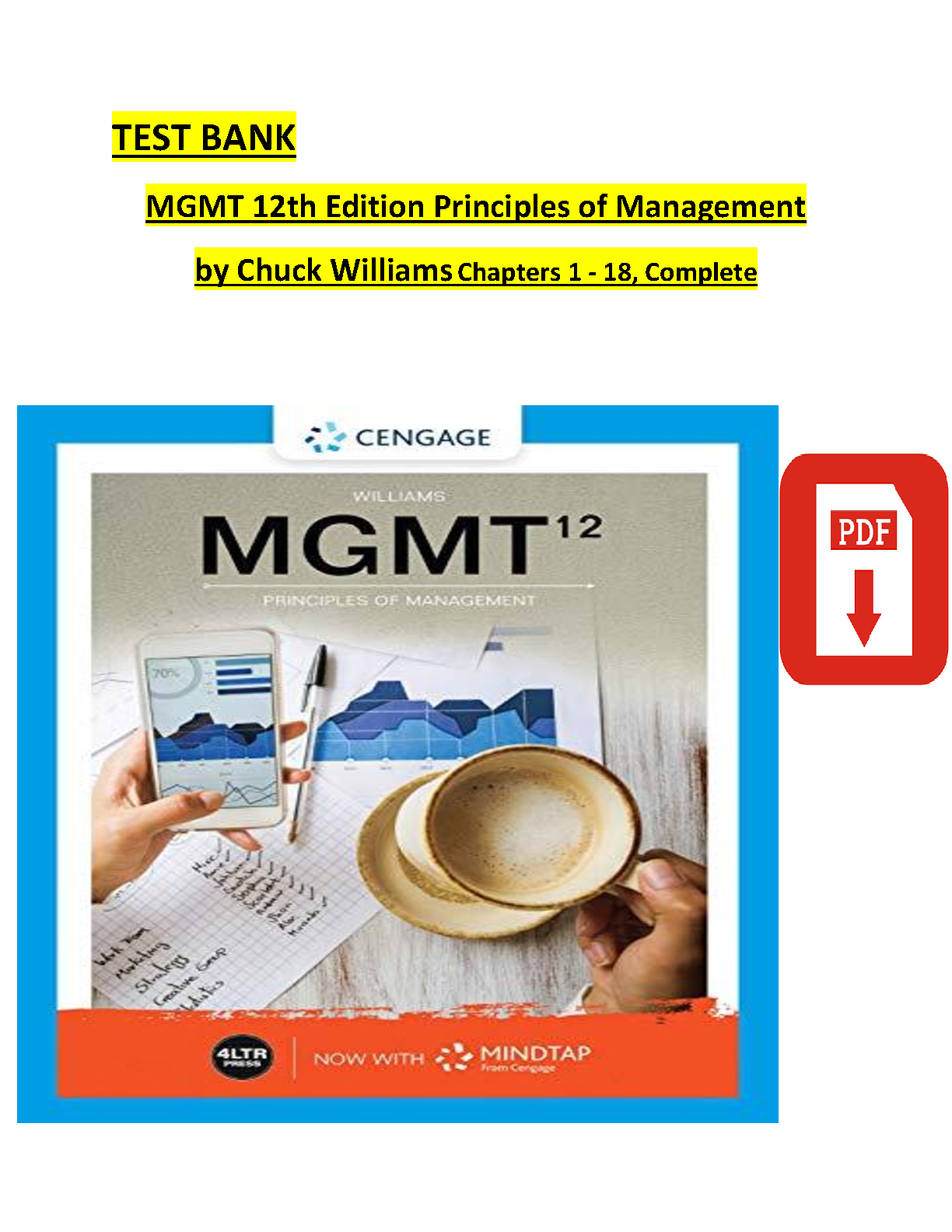 Download the complete test bank for Chuck Williams' MGMT 12th Edition: Principles of Management. This comprehensive resource covers chapters 1-18 and is designed to help you master the material and achieve exam success on your first attempt. Prepare effectively and avoid resits with this invaluable study tool.