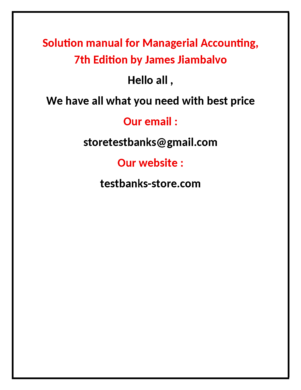 Managerial Accounting, 7th Edition by James Jiambalvo: Ace Your Exams with this 2024-2025 Guide