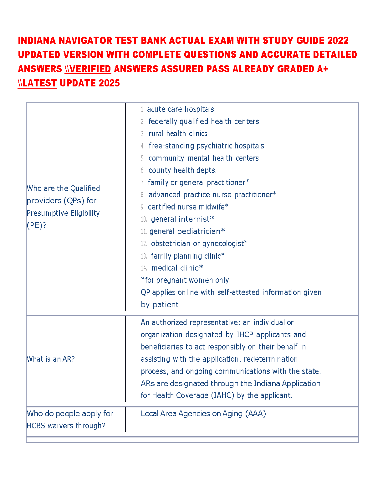 Indiana Navigator Test Bank Actual Exam with Study Guide 2022-2025 Edition: Updated Version with Complete Questions and Verified Answers
