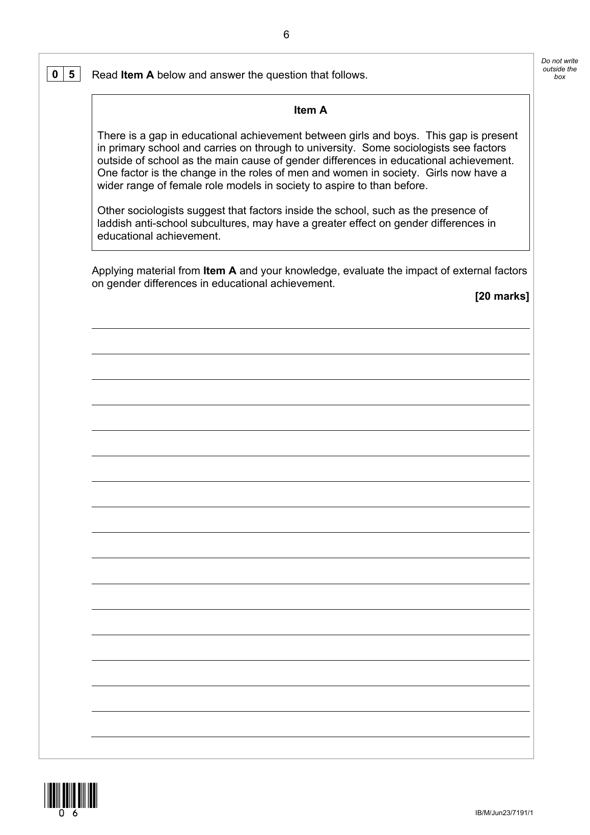 AQA AS SOCIOLOGY PAPER 1 MAY 2023 QUESTION PAPER (7191/1: Education with Methods in Context)