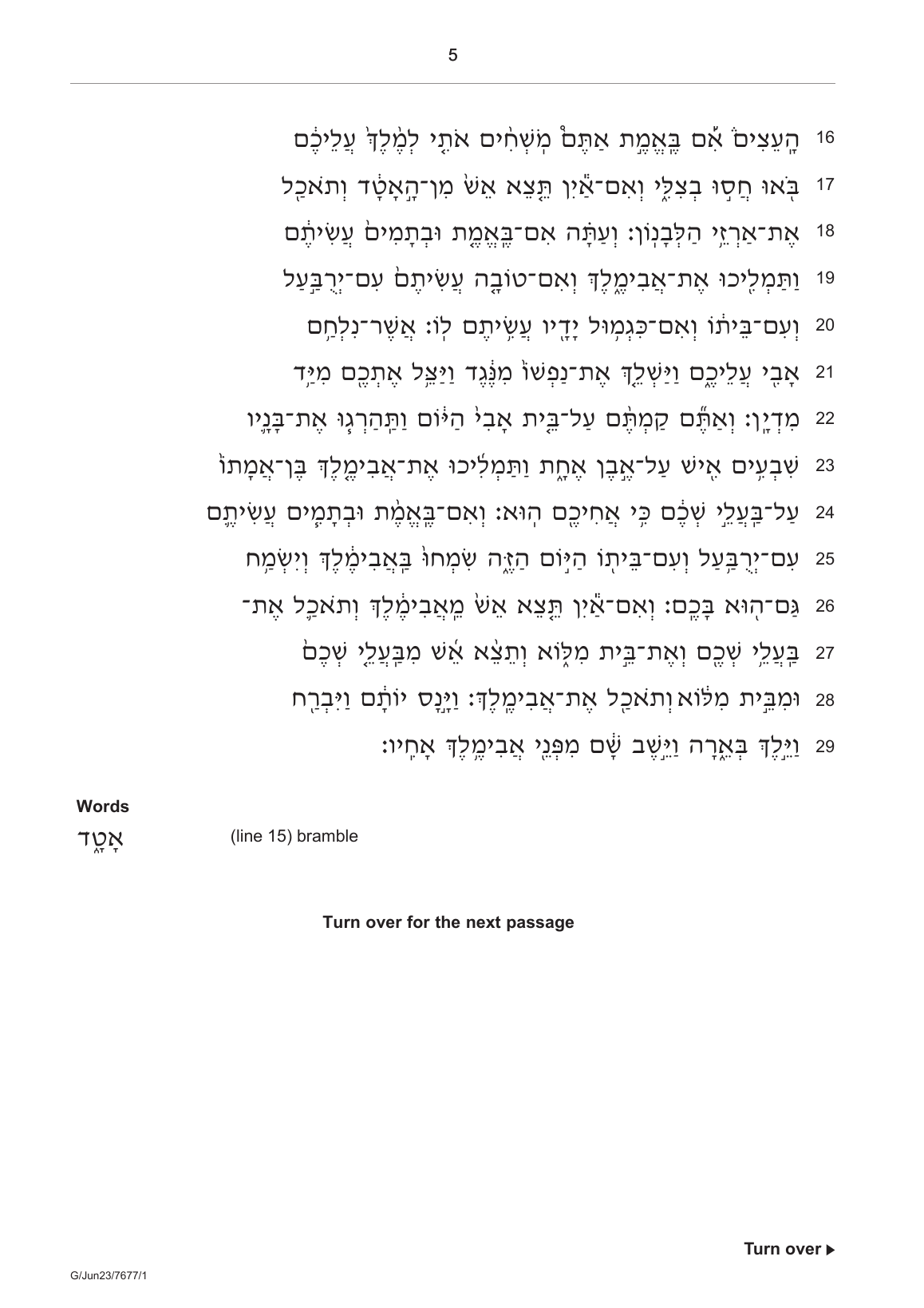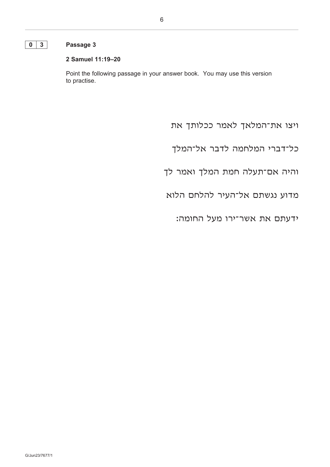 AQA AS BIBLICAL HEBREW PAPER 1 MAY 2023 Source Booklet (7677/1: Translation, Comprehension and Composition)
