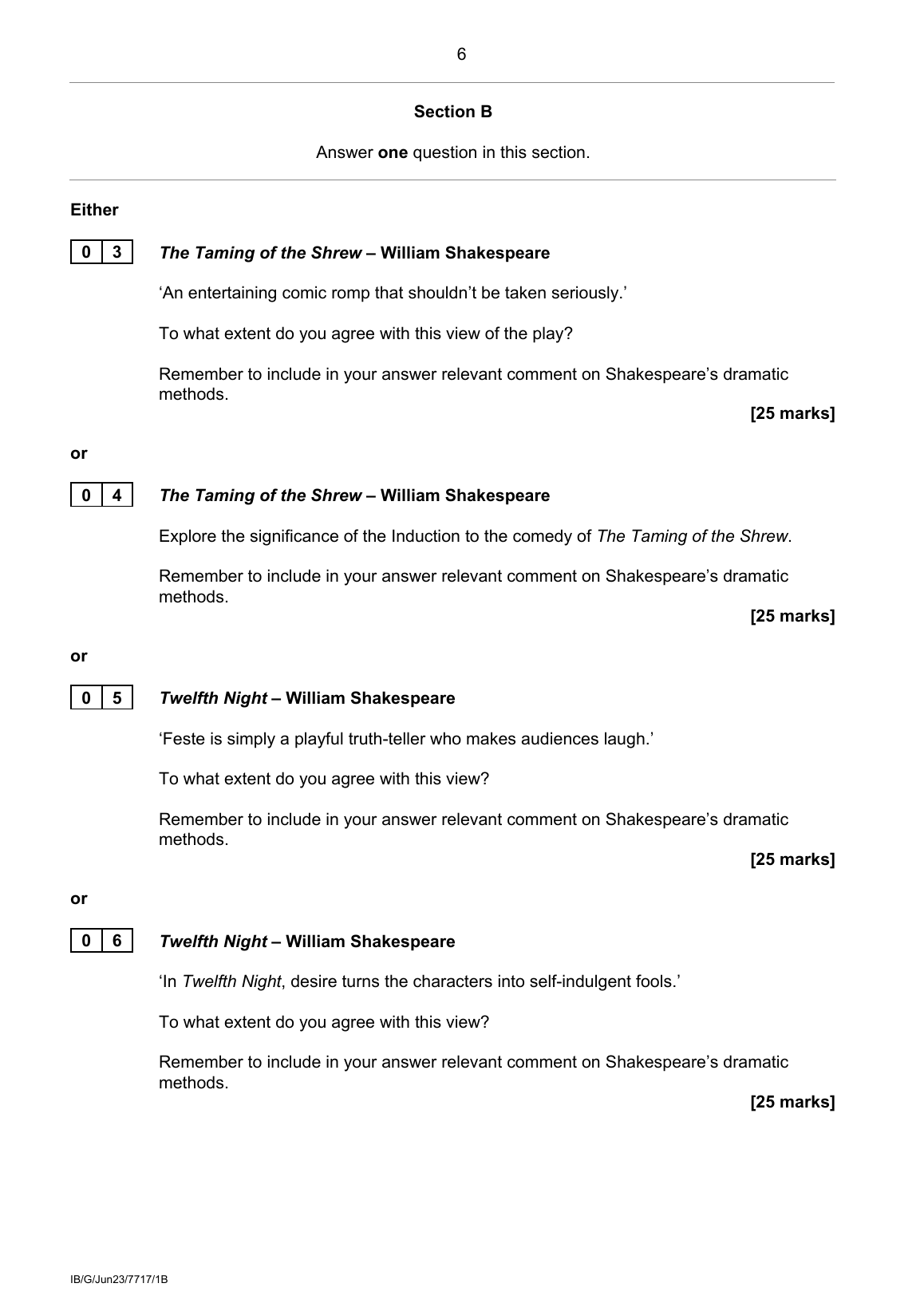 AQA A LEVEL ENGLISH LITERATURE B PAPER 1 MAY 2023 QUESTION PAPER (7717/1B: Literary genres: Aspects of comedy)