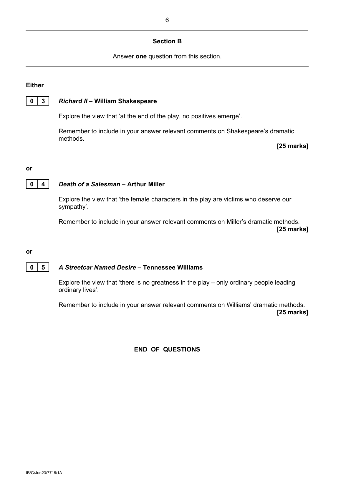 AQA AS ENGLISH LITERATURE B PAPER 1 MAY 2023 QUESTION PAPER (7716/1A: Literary genres: Drama: Aspects of tragedy)