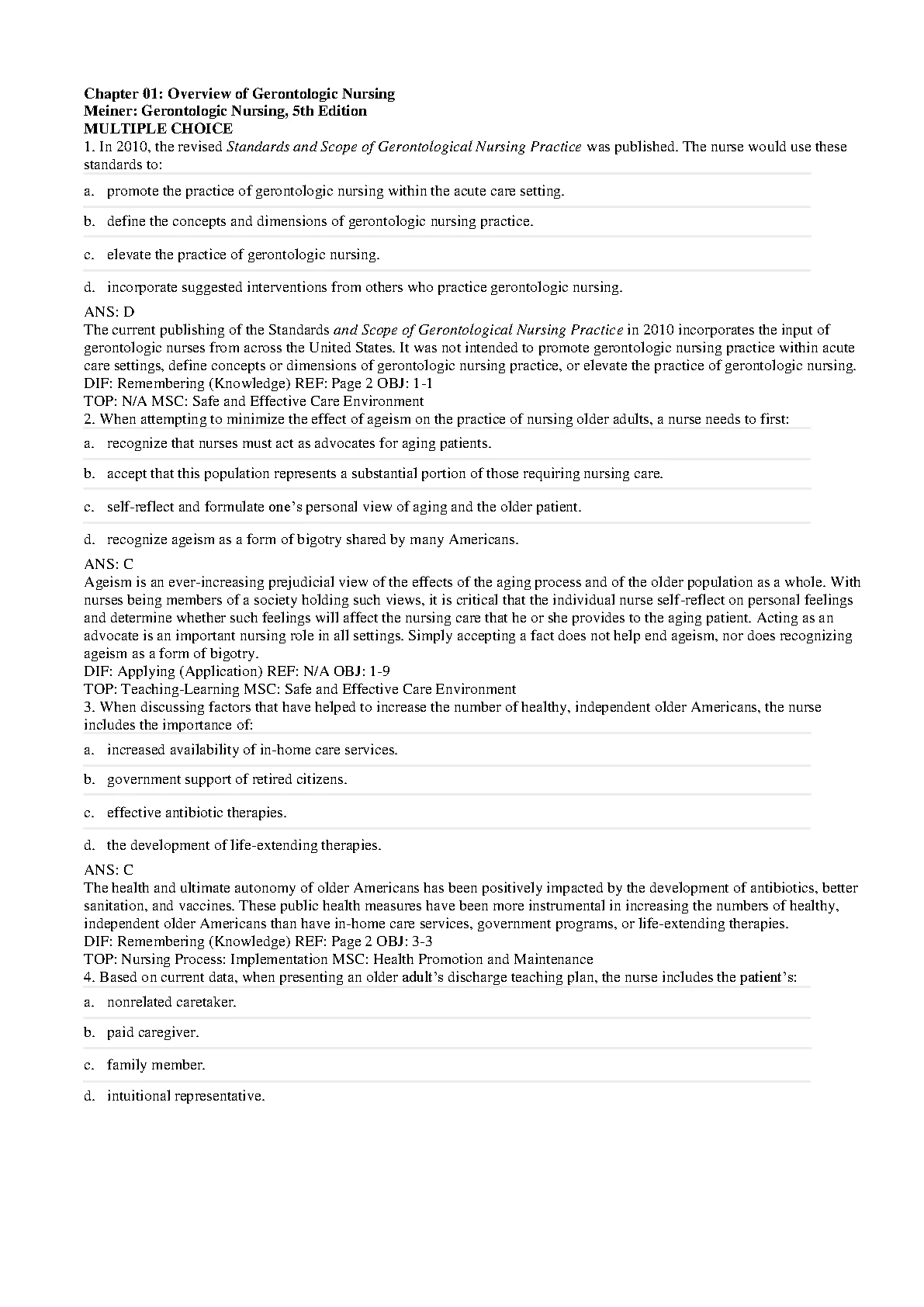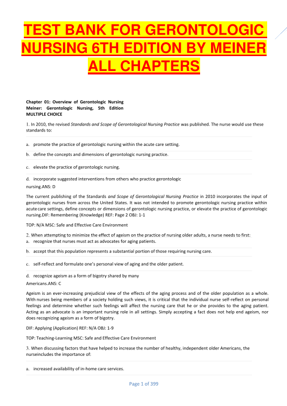 Meiner: Gerontologic Nursing, 5th Edition TEST BANK ALL CHAPTERS INCLUDED