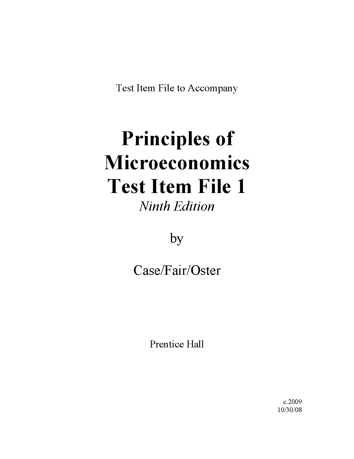 Test Item File to Accompany Principles of Microeconomics Test Item File 1 Ninth Edition by Case/Fair/Oster Prentice Hall . DOWNLOAD on www.hackedexams.com INSTANTLY.