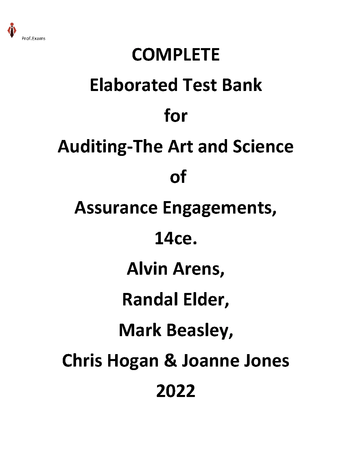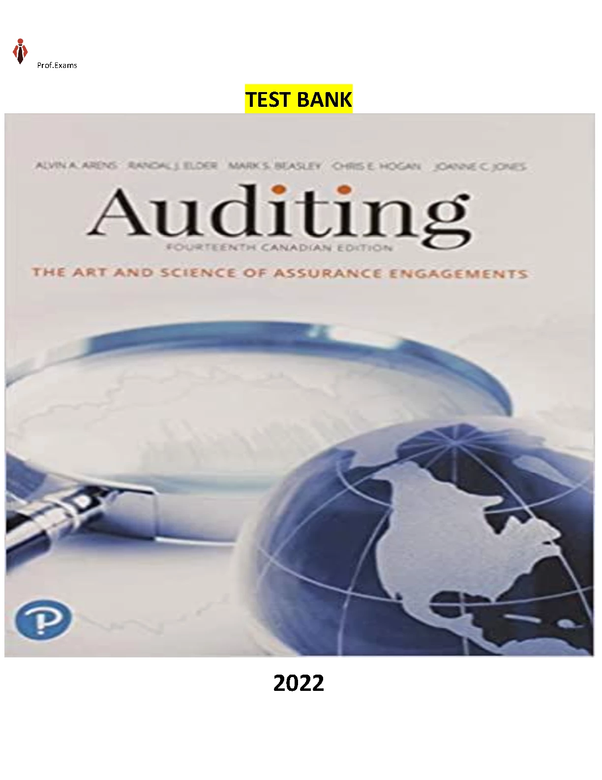 COMPLETE Elaborated Test Bank for Auditing-The Art and Science of Assurance Engagements, 14th Edition by. Alvin Arens, Randal Elder, Mark Beasley, Chris Hogan & Joanne Jones