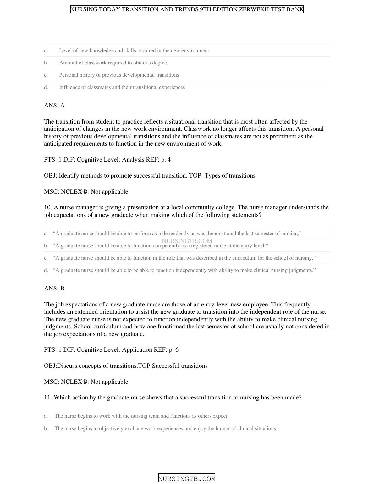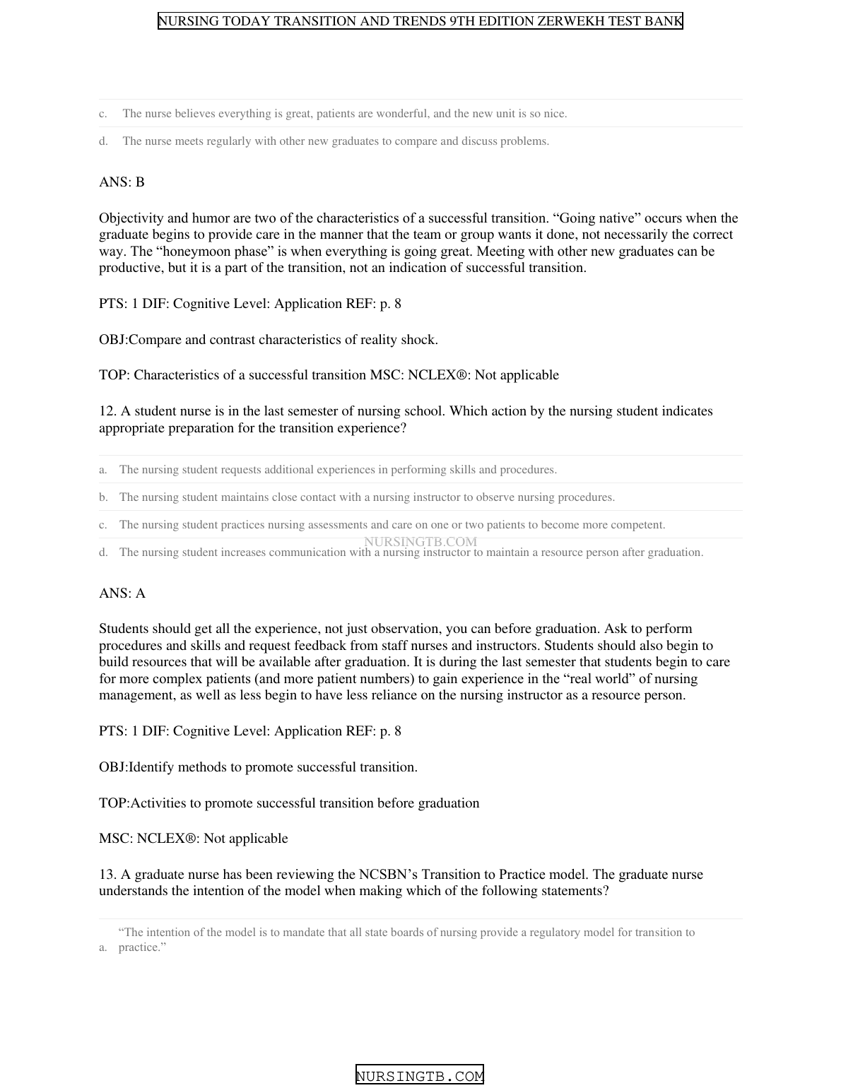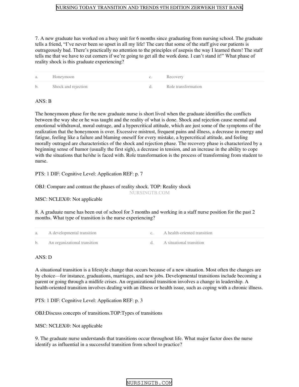 Nursing Today Transition and Trends 9th Edition BY Zerwekh Garneau TEST BANK