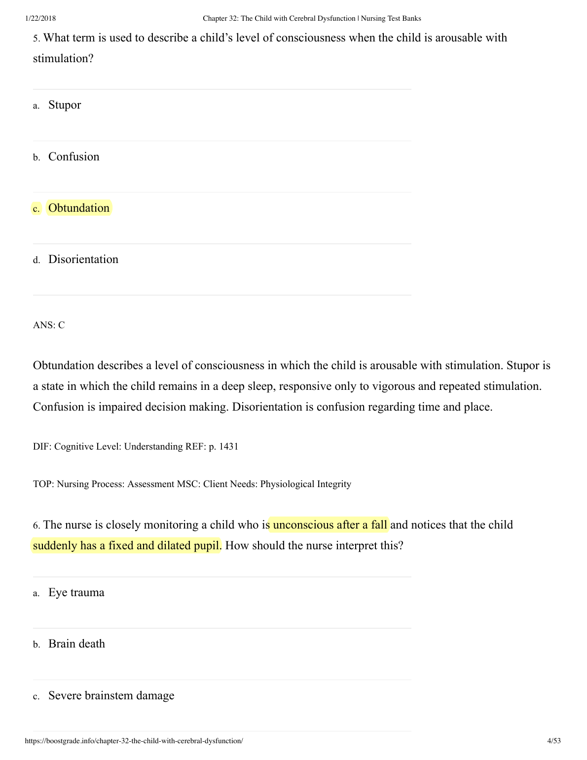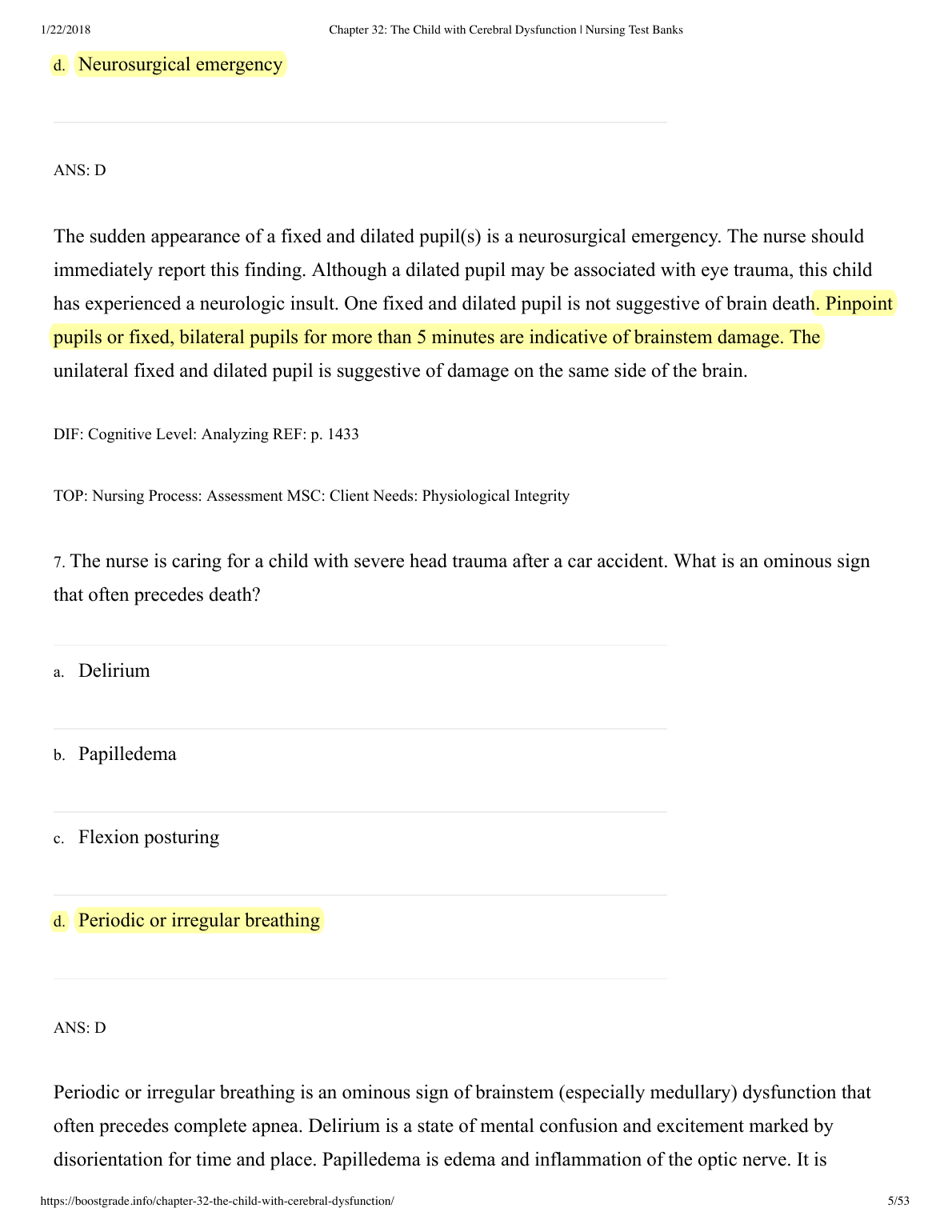 Chapter 32: The Child with Cerebral Dysfunction | Nursing Test Banks