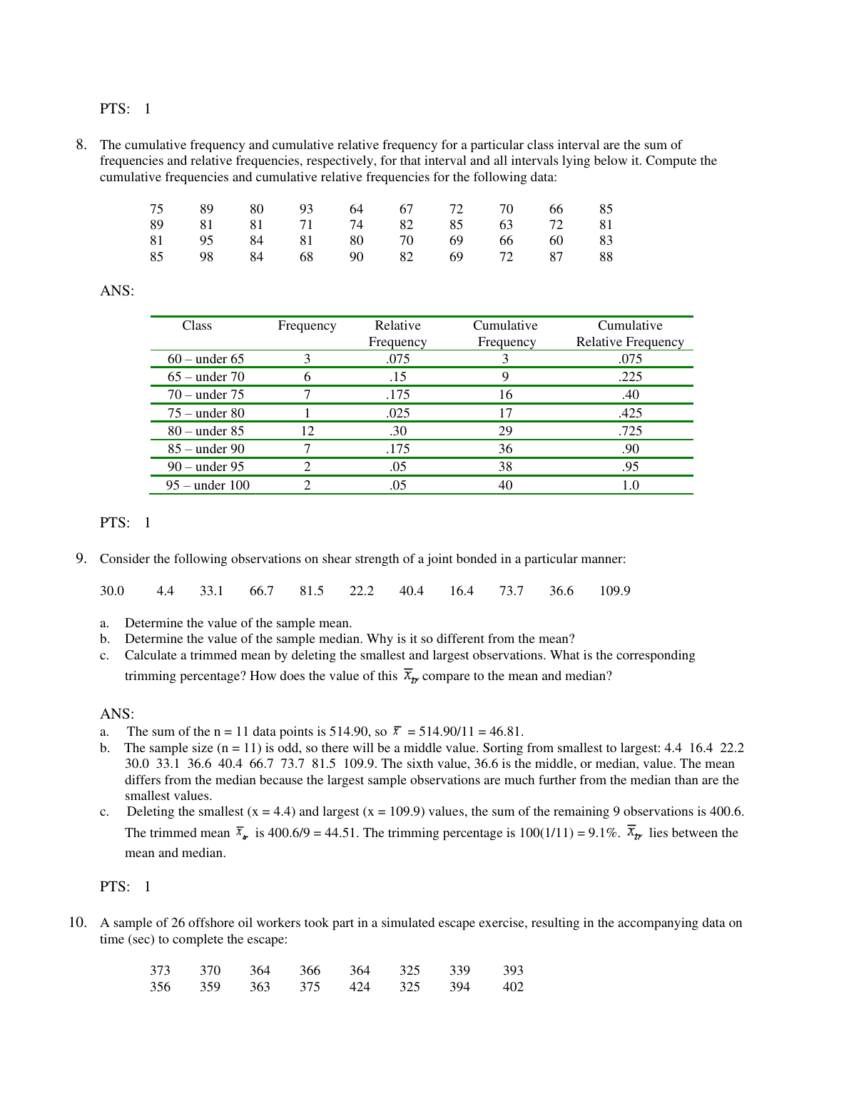 Test Bank For Probability And Statistics For Engineering And The Sciences 8th Ed by Jay L. Devore.