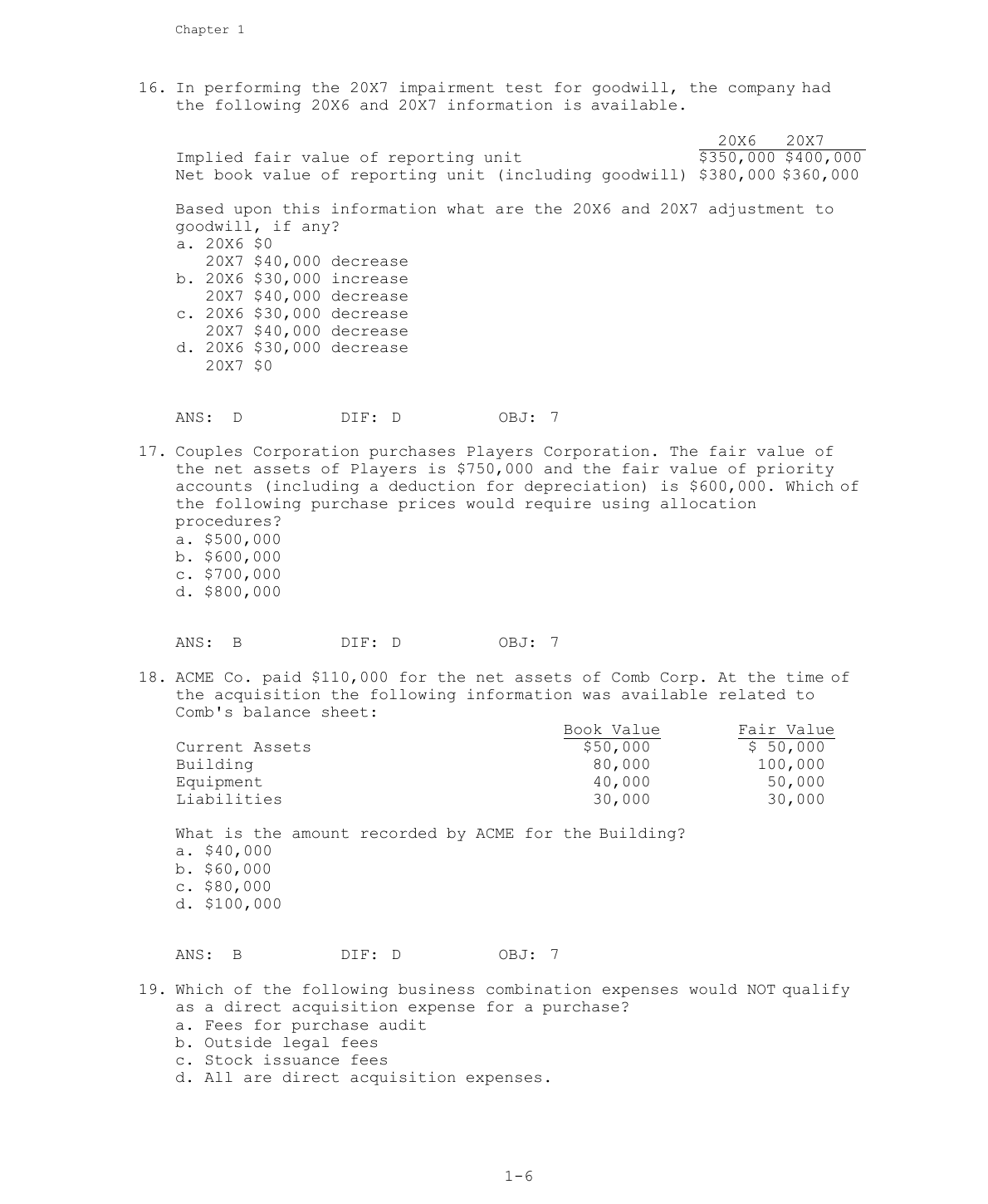 Test Bank Advanced Accounting 9th Edition by Fischer